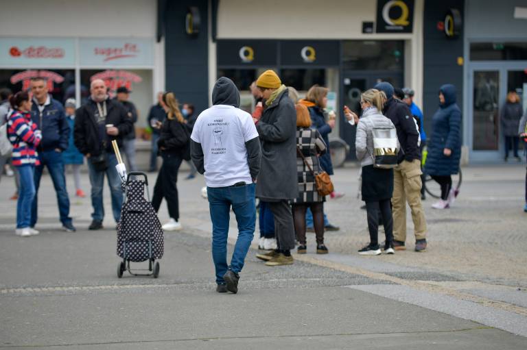 Protestniki so tudi tokrat skandirali »maske dol« in pozivali proti cepljenju otrok ter samotestiranju.