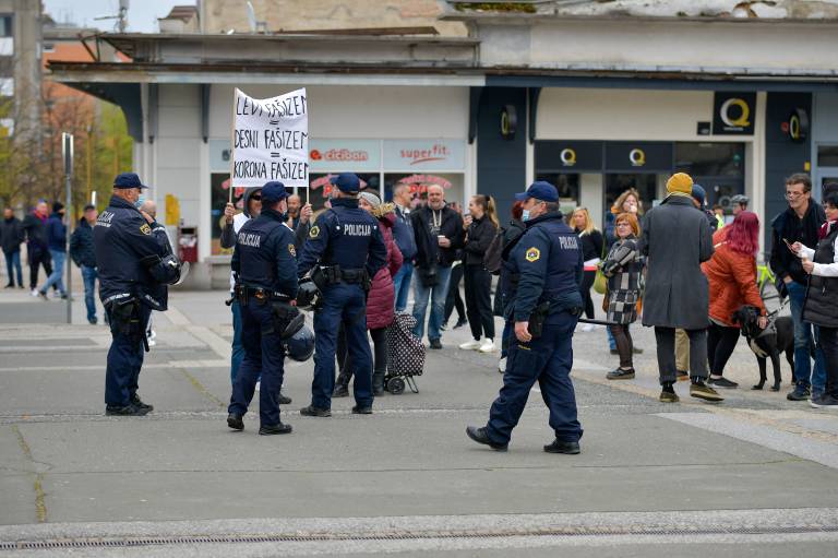 »Opravljamo naloge varovanja življenja in premoženja ljudi, preprečujemo kršitve javnega reda in miru, nadziramo pa tudi spoštovanje veljavnih odlokov za preprečevanje širjenja nalezljive bolezni,« so o današnjem shodu povedali na Policijski upravi Maribor.