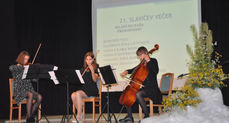 Vita Borovič, Lara Weis in Lucija Divjak so nastopile na violončelu in violinah ter poskrbele za pravi umetniški pečat prireditvi.
