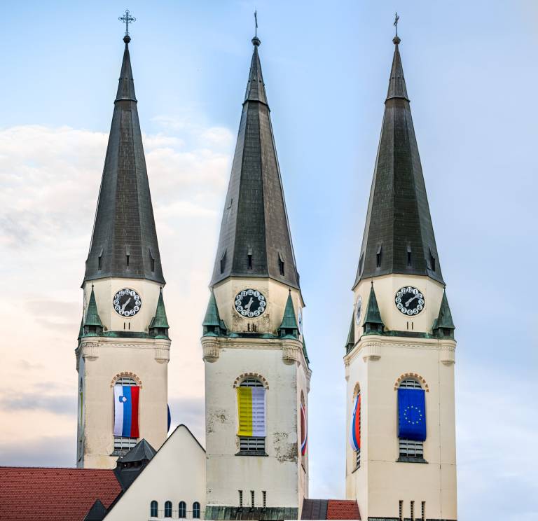 Soboška stolnica se je z izobešanjem slovenske, evropske in papeške zastave počastila praznikoma, ki ju obeležujemo v tem tednu. Že jutri je dan Marijinega vnebovzetja, ki je tudi dela prost dan, v soboto pa praznik združitve prekmurskih Slovencev z matičnim narodom.