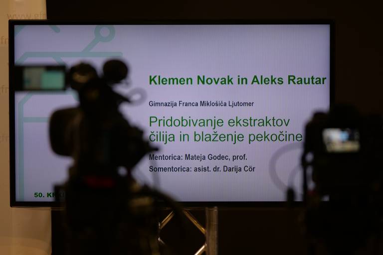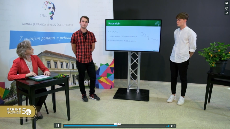 - Aleks Rautar in Klemen Novak za nalogo Pridobivanje ekstraktov čilija in blaženje pekočega občutka, mentorici Mateja Godec, dr. Darija Cör,