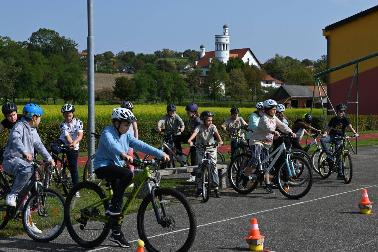 - Vožnjo po kolesarskem poligonu, kjer so utrjevali svoje spretnosti.