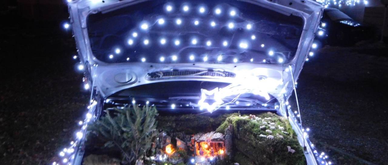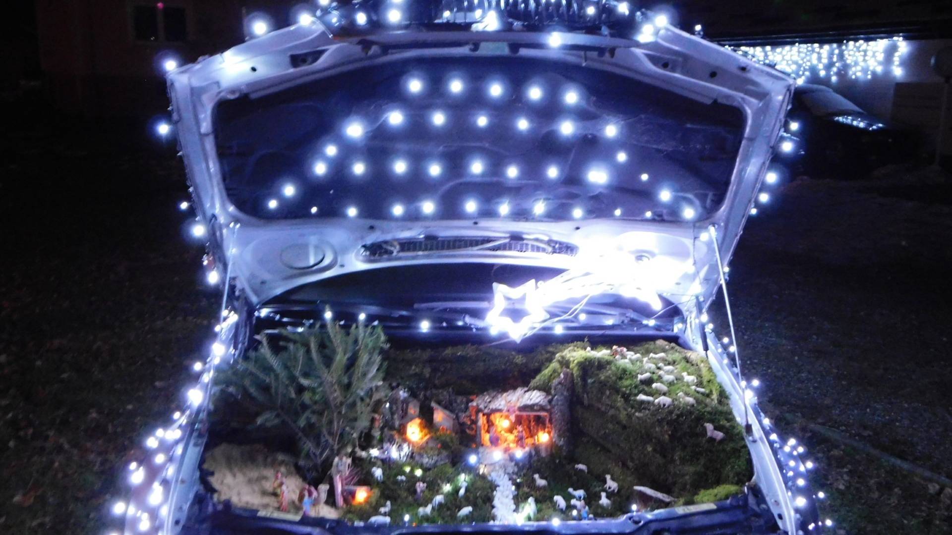 Moramo mu priznati, da je izjemno inovativen, jaslice pa s številnimi dodanimi lučkami v večernih urah na avtomobilu izgledajo zanimivo in posebno.