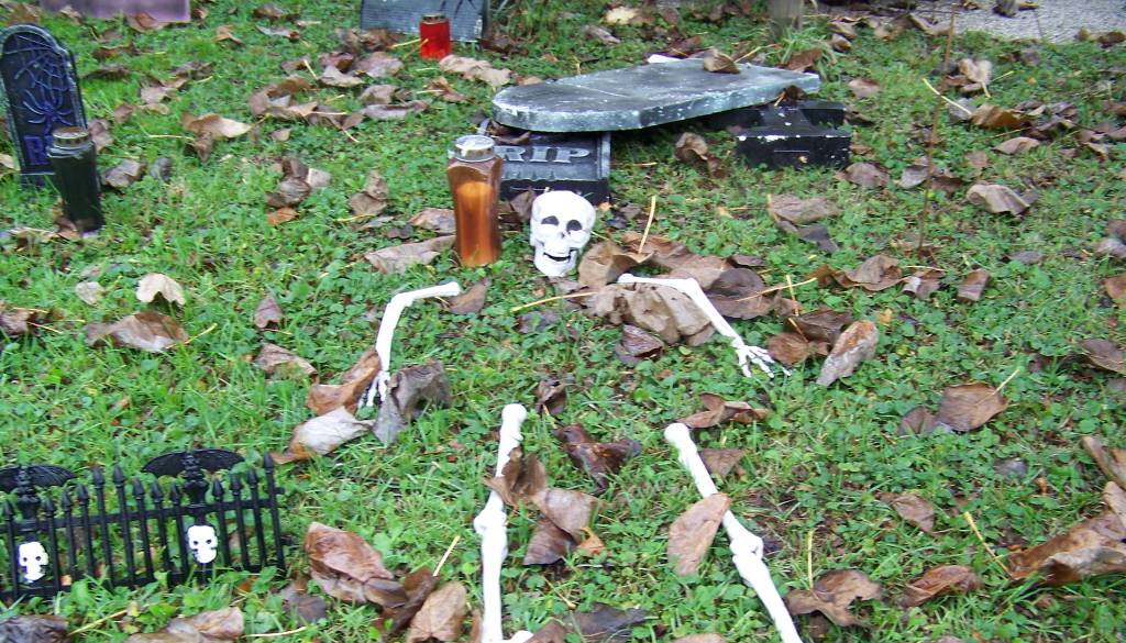 Pred letošnjo nočjo čarovnic je v središču vasi Rakičan nastalo čarovniško pokopališče.