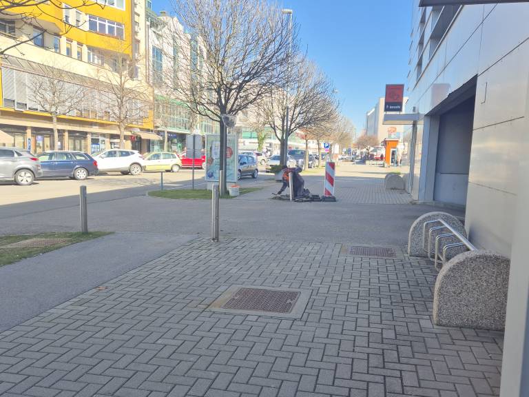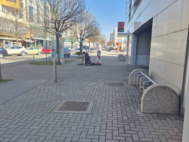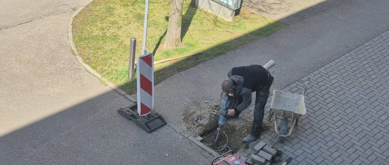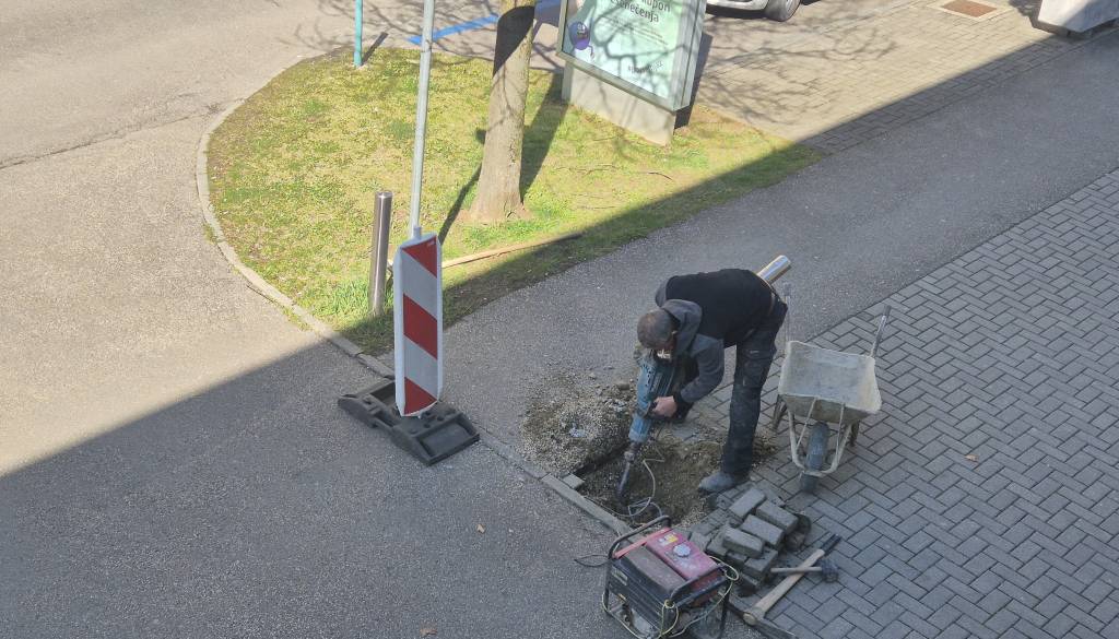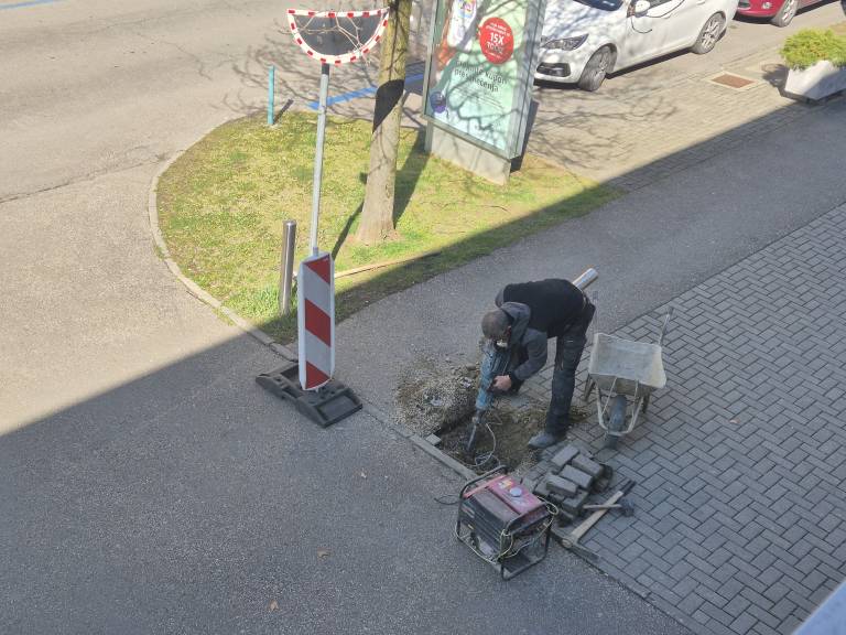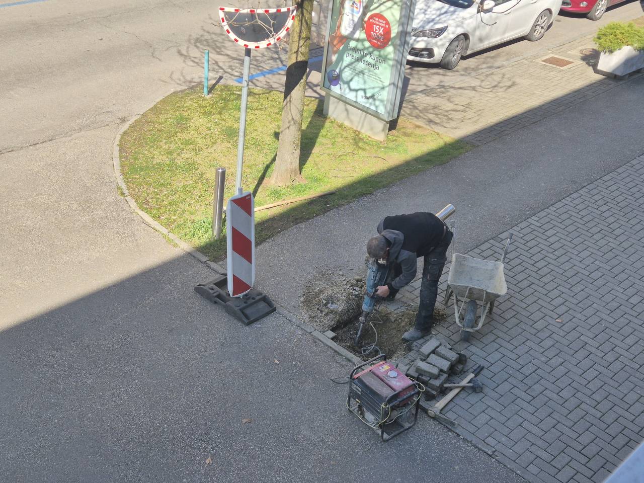 Delavci Komunale Murska Sobota so danes, 20. marca, poškodovane tlakovce in stebriček sanirali.
