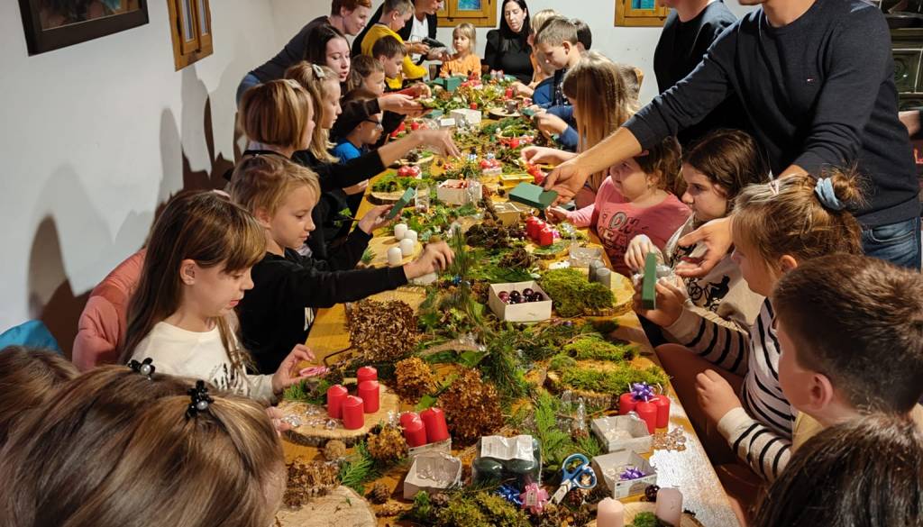 Kulturno društvo Lipa iz Beltincev je v petek, 24. novembra, v cimprani hiši v Lipi, za otroke iz vasi pripravilo delavnice, v katerih so v pričakovanju prazničnih dni skupaj s člani društva in ostalimi krajani izdelovali adventne venčke.