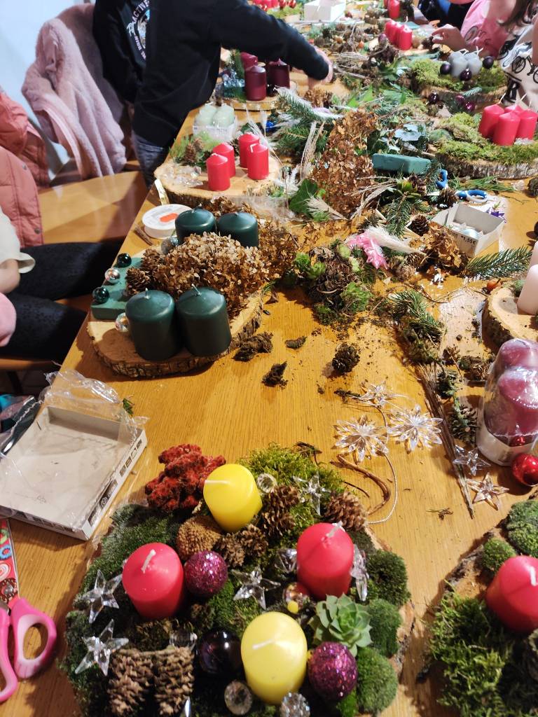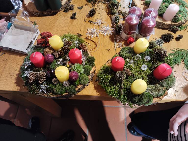 Po koncu izdelave so vsakemu venčku dodali štiri sveče, ki jih bodo nato na adventne nedelje prižigali vse do božiča.