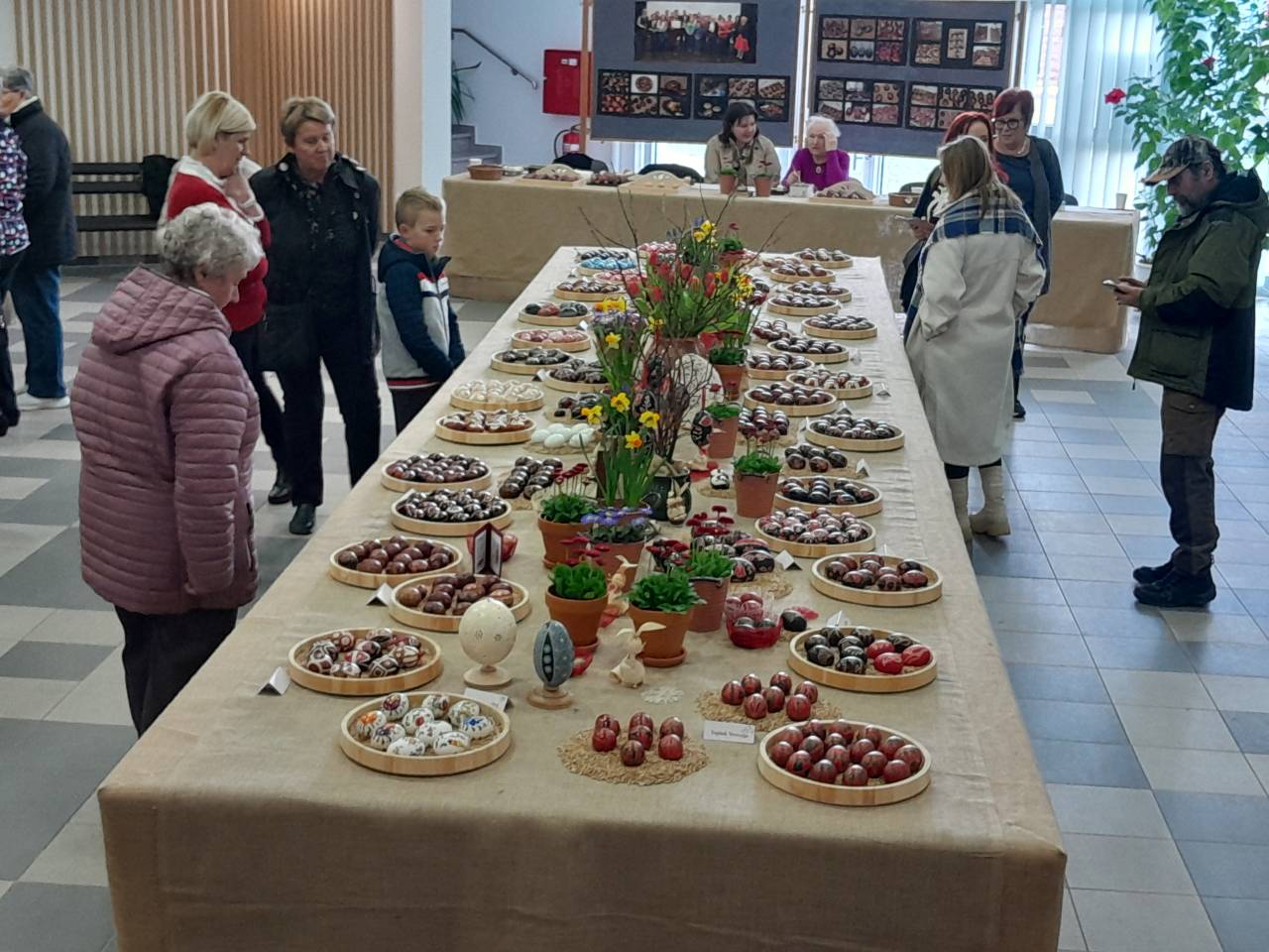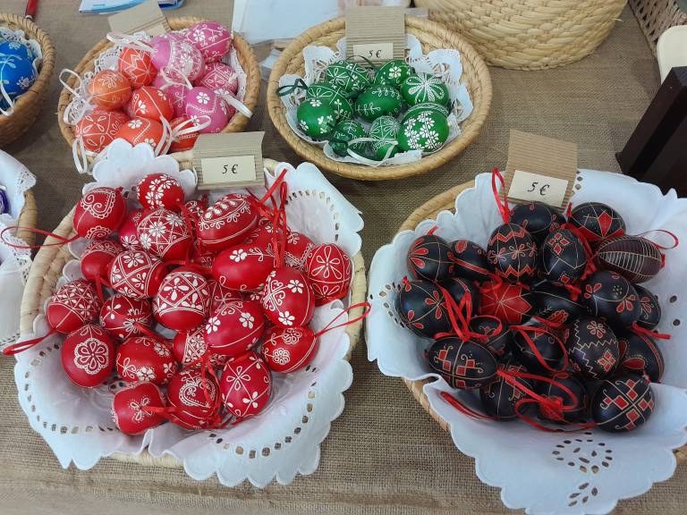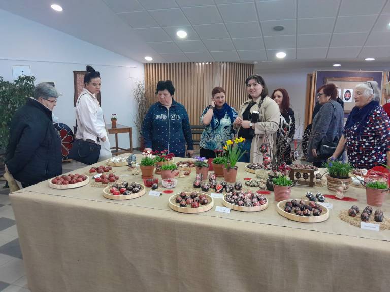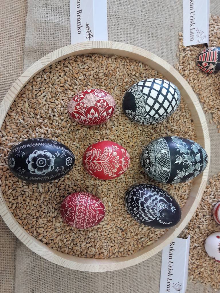 Še posebej so se potrudile članice in člani sekcije za izdelavo pirhov v Kulturnem društvu Petöfi Sandor Dobrovnik, ki se ukvarjajo z različnimi tehnikami, in sicer batik tehniki, s čebulno jajčno lupino in praskanjem.