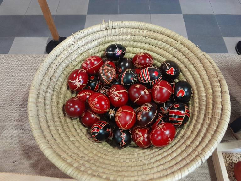 Tradicionalna tehnika izdelovanja pirhov, to so rdeča, črna in bela barva.