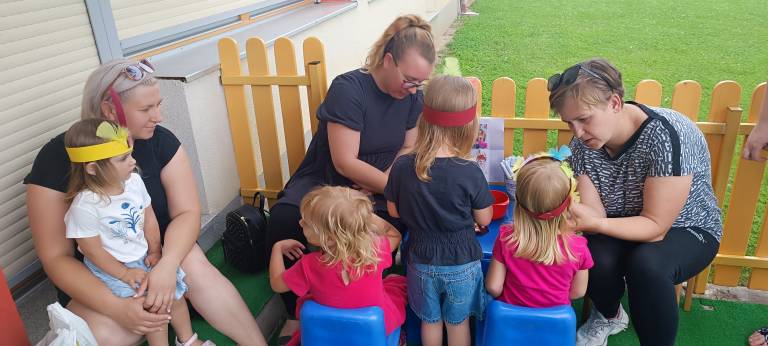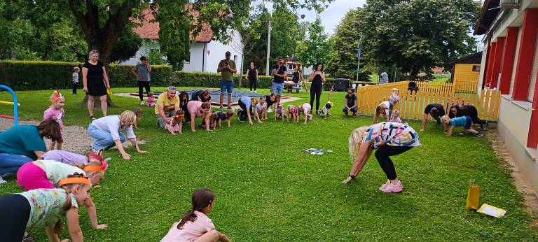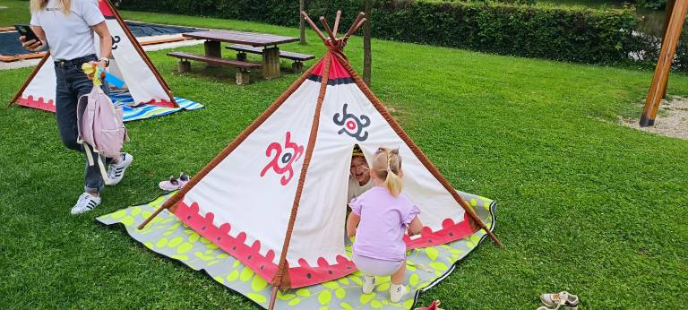 Pridružila se jim je Urška, katera je za otroke in starše izvedla jogo. Sledila je igra v šotorih in zabava ob glasbi, prigrizkih in soku.