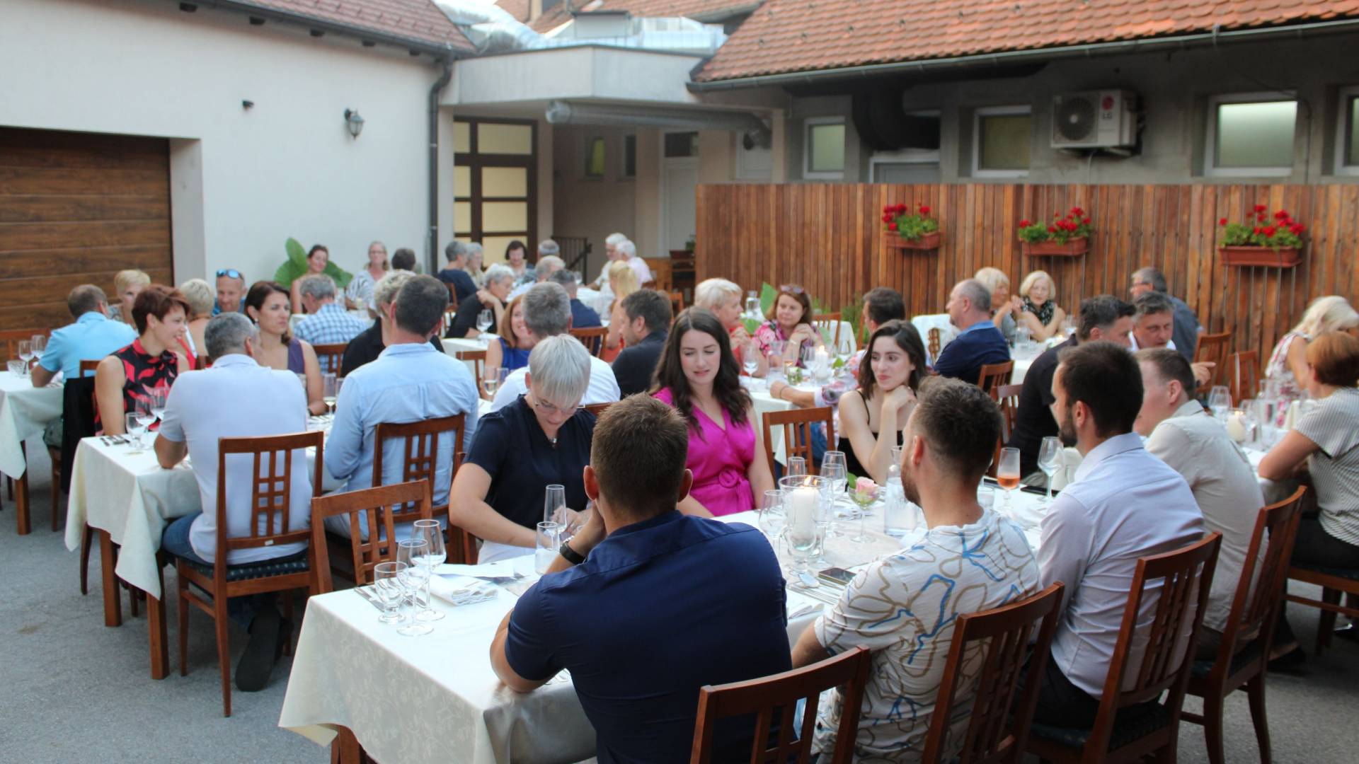 Za kulinarične užitke je poskrbela ekipa iz kuhinje z Angelo Pihlar na čelu, ki letos obeležuje okroglih petdeset let delovanja v gostinstvu in temu jubileju je bil večer tudi namenjen.