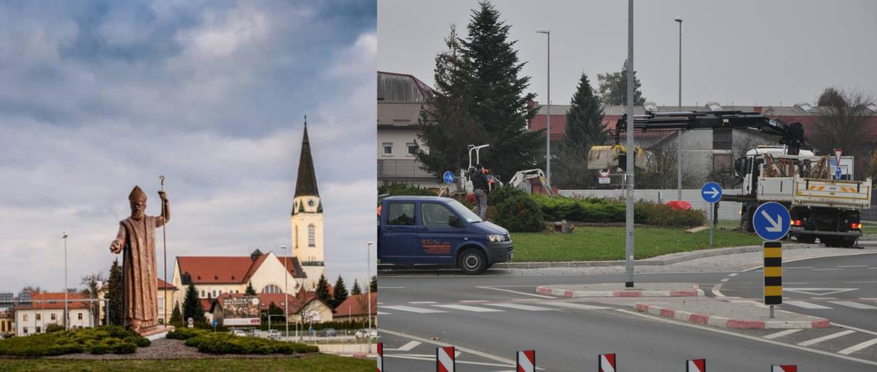 Kot je opaziti, namreč ravno v tem času potekajo dela v krožišču, kjer naj bi postavljali temelj za kip svetega Nikolaja.