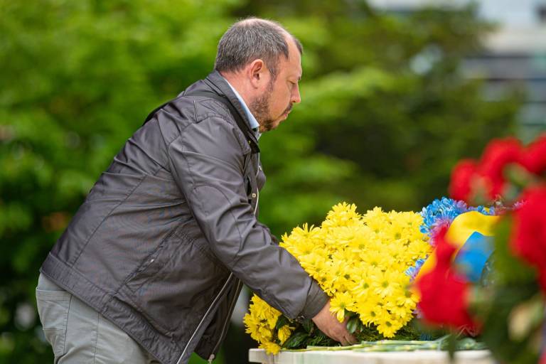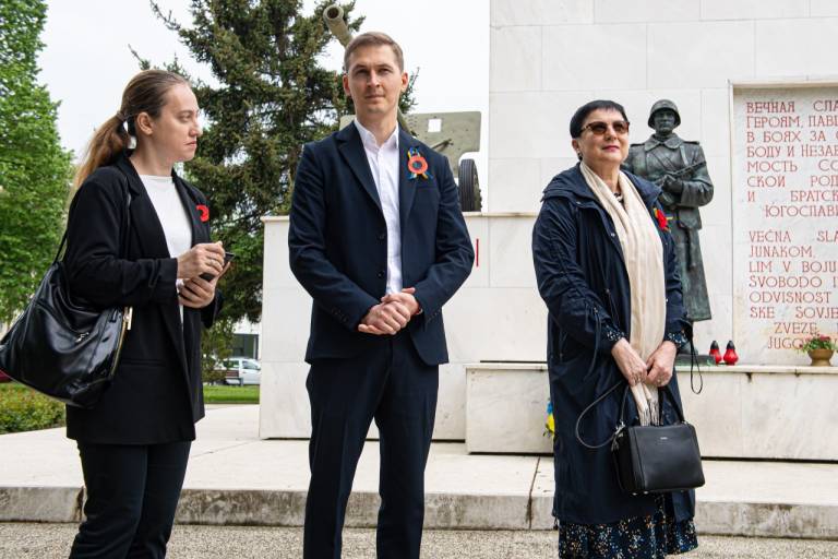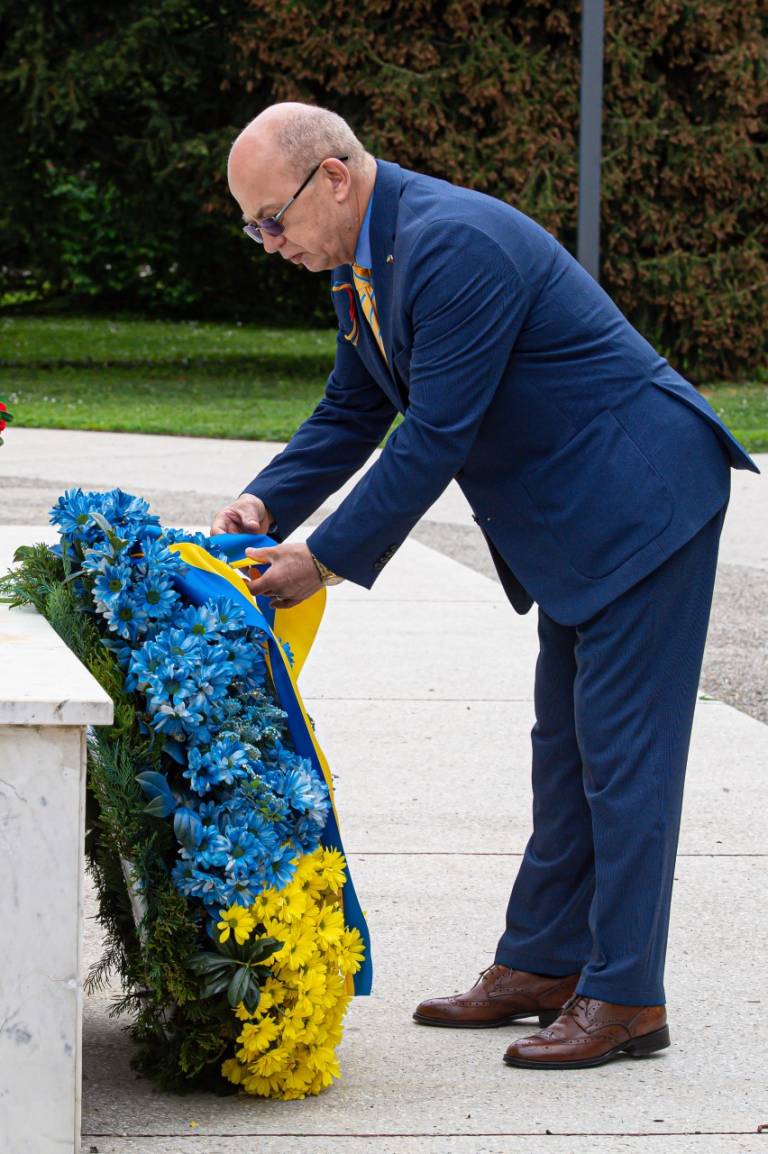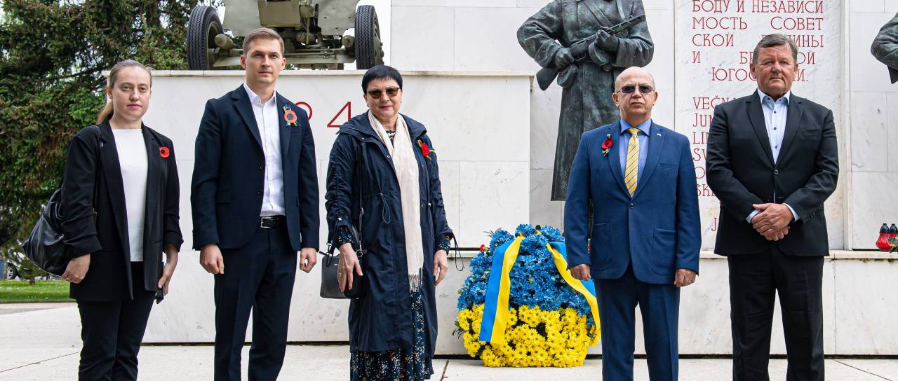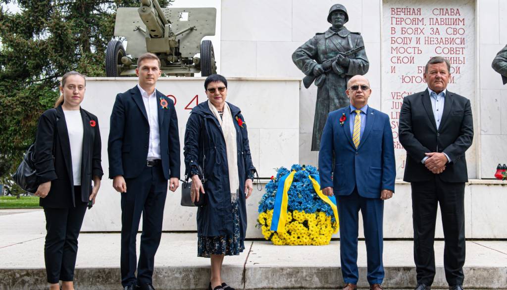 Ob dnevu zmage se je vojakom, ki so padli za svobodo v drugi svetovni vojni na naših tleh, prišel poklonit veleposlanik Ukrajine v Sloveniji, Mihajlo Brodovič. Slovesnosti zaradi dogajanja v Ukrajini, ni bilo.