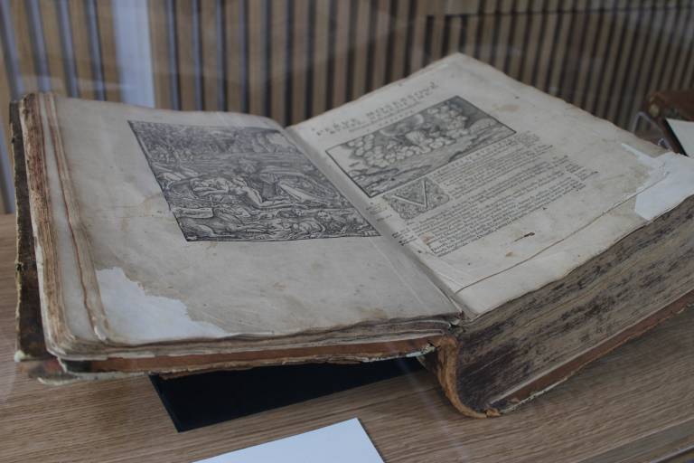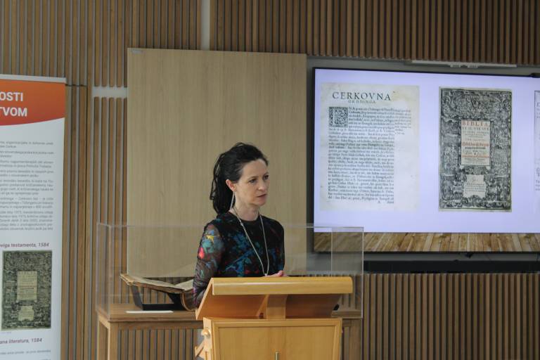 Razstavo, ki prikazuje izvirnike iz Narodne in univerzitetne knjižnice Ljubljana, je predstavila Klaudija Sedar iz Zavoda Primoža Trubarja.