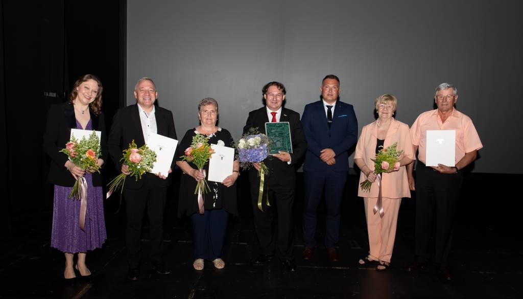Plaketo občine sta pejela Biserka Flegar in Avgust Marič.