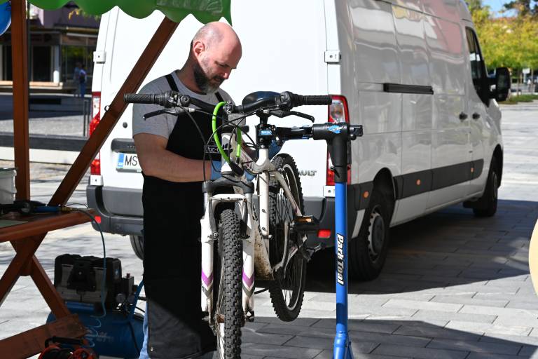 V času Evropskega tedna mobilnosti, ki letos poteka pod sloganom »Mobilnost za vse!«, smo obiskali popravljalnico koles na Slovenski ulici v Murski Soboti, kjer mojster iz podjetja Biciklin pod vodstvom Danijela Pozderca skrbijo, da kolesa občanov znova brezhibno zaokrožijo po mestnih ulicah.