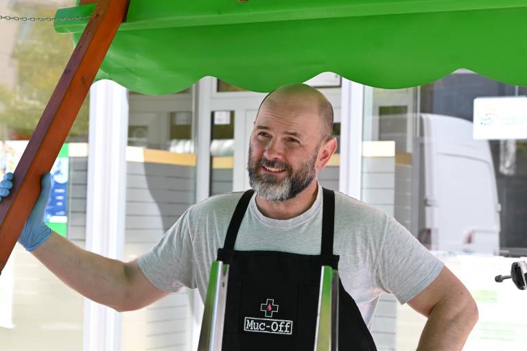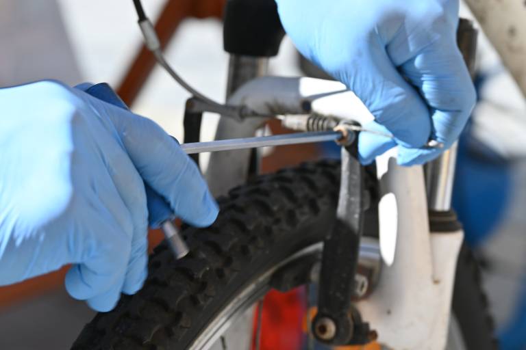 »Gre za manjša popravila – nismo klasičen servis, kjer bi delali generalke, ker nimamo vseh rezervnih delov in opreme. A veliko opravimo: nastavimo zavore, menjalnike, napolnimo gume, zamenjamo plašče ali zračnice. Če ima kdo doma rezervni del, ga prinese, pa ga vgradimo,« nam je povedal Danijel Pozderec iz podjetja Biciklin.