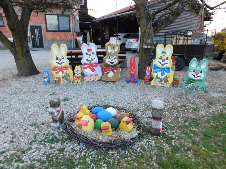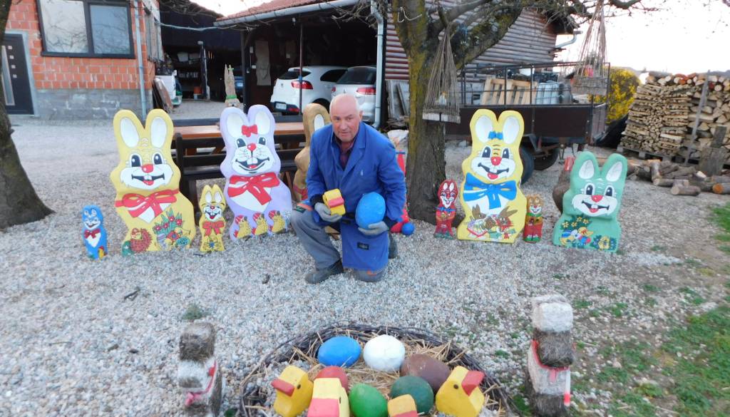 En izmed aktivnejših članov Kulturnega društva Rdeči zvonček Nedelica je nedvomno rokodelec Franc Zver, ki se je pred velikonočnimi prazniki lotil izdelave najrazličnejših zajčkov, ki sedaj krasijo njegovo dvorišče v Nedelici.