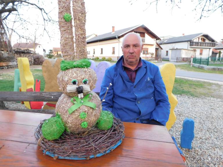 Franc Zver iz Nedelice izdeluje vse vrste velikončnih zajčkov, ki jih potem tudi ponosno razstavlja.
