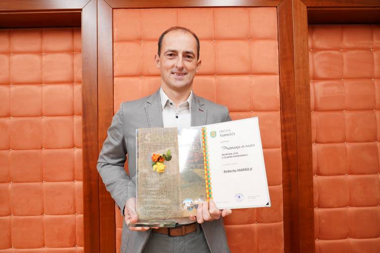 - Robi Markoja je prejel pokal in listino za naziv športnika leta 2021.