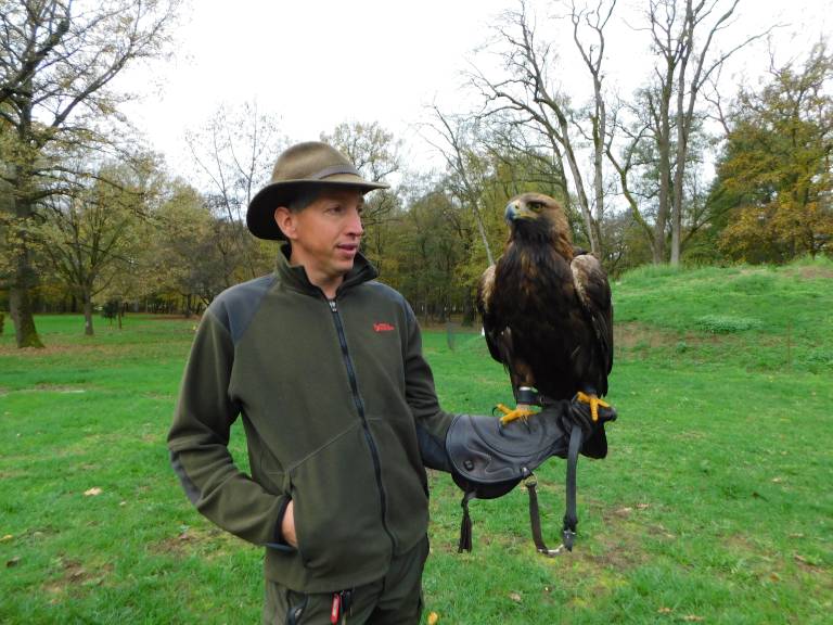 Lova s sokoli so se udeležili gojitelji ptic ujed iz Slovenije in sosednjih držav, z največjim planinskim orlom pa se je predstavil sokolar Ruudj Sterken iz Holandije. Gre za planinskega orla, samca, ki lovi lisice, zajce in srnjad.