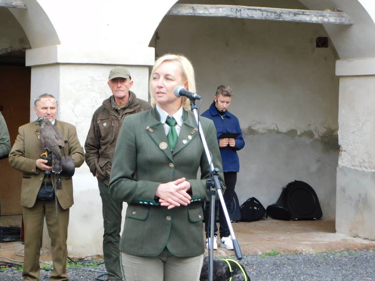 Pred svečanim odprtjem lova s sokoli je vse zbrane nagovorila direktorica Zavoda za turizem, kulturo in šport Beltinci Gabrijela Küzma.