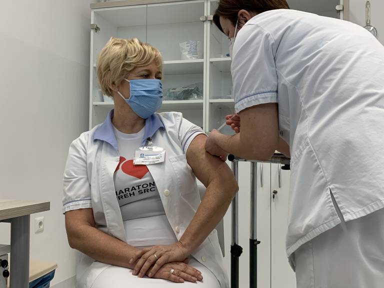 Strokovna komisija v bolnišnici je za cepljenje izbrala tiste, ki so najbolj izpostavljeni pri delu z bolniki in virusom, in to vse profile, od zdravnikov, negovalnega in tehničnega osebja do vzdrževalcev in čistilcev, ki so dobili prvi odmerek.