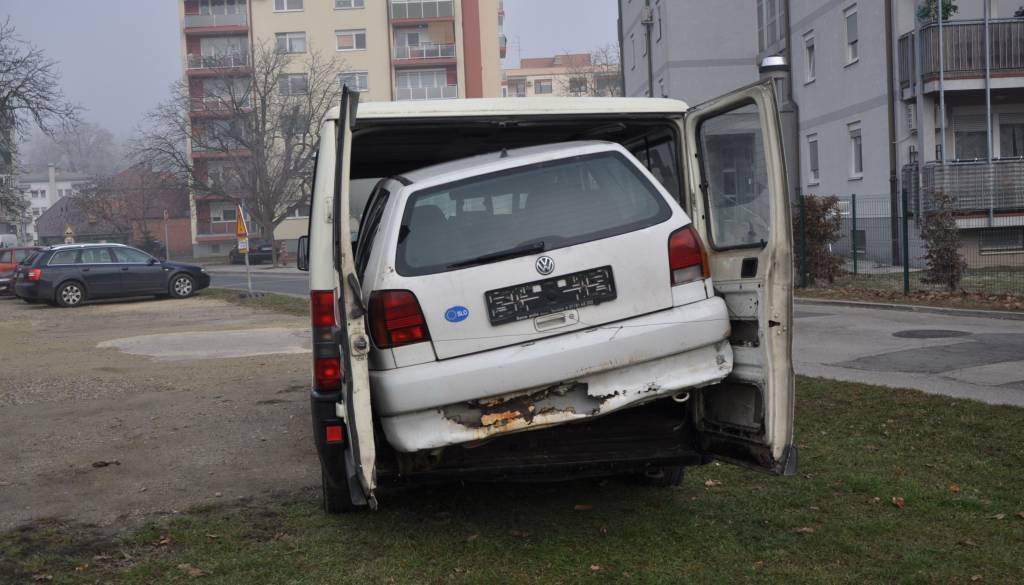 Mimoidoče in mimovozeče je danes v Murski Soboti presenetil nenavaden prizor. Na parkirišču v bližini blokov na Stari ulici namreč stoji kombi, v katerega je stlačen avtomobil!