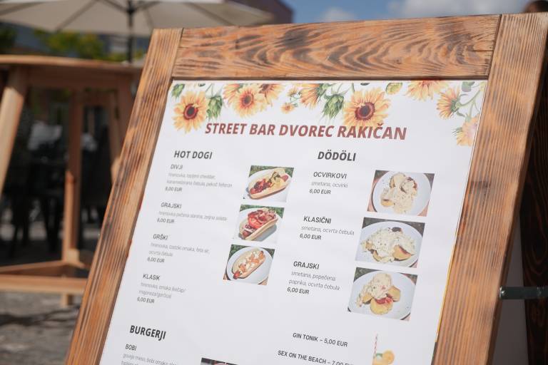 Poleg njih so na voljo tudi Street bar Dvorec Rakičan, ki ponujajo ulično hrano in osvežilne pijače. Pri njih je mogoče poskusiti različne vrste burgerjev in hot dogov, ponujajo pa tudi dödole in solate.