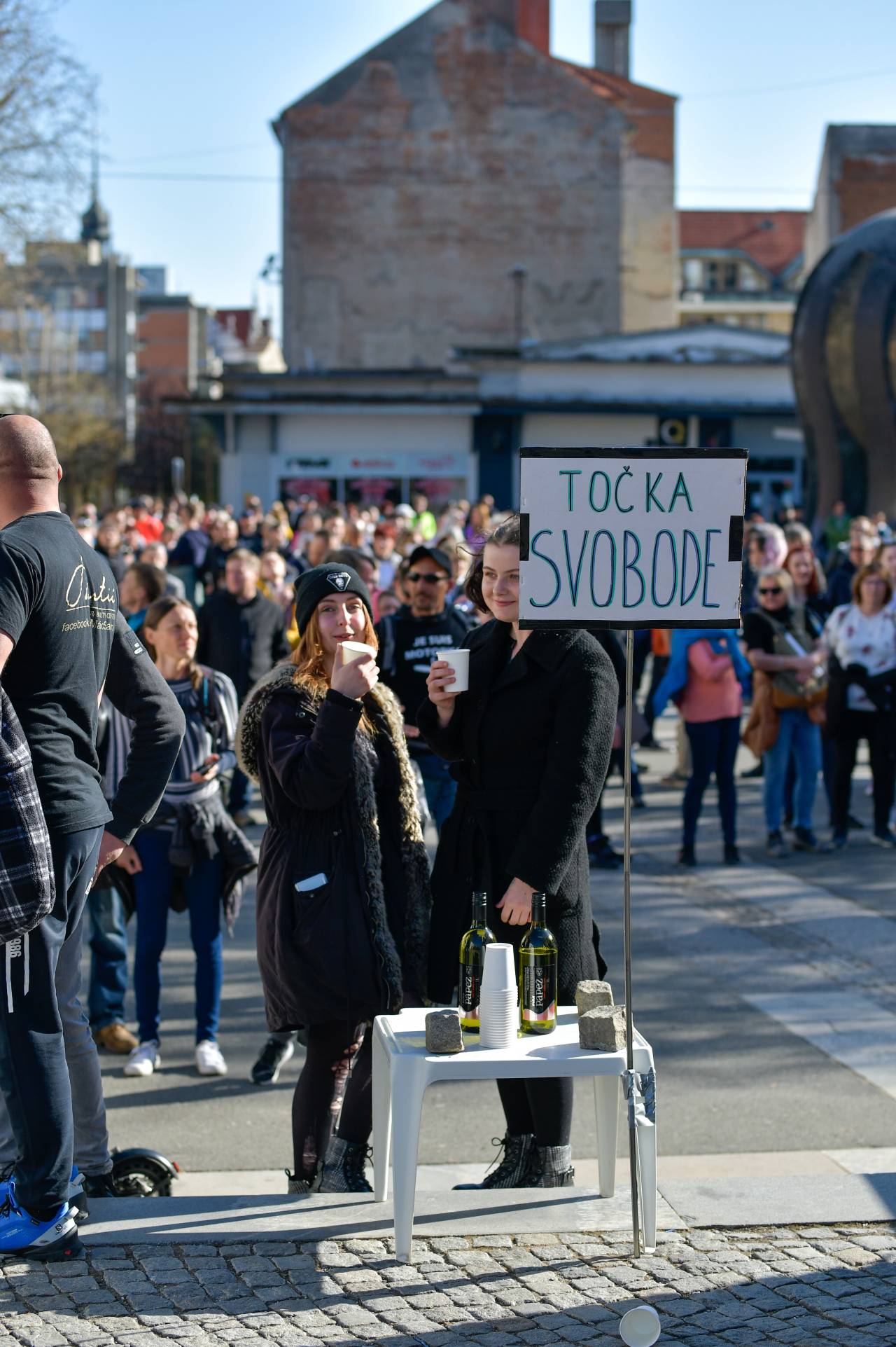Proteste je preko ozvočenja vodilo več govornikov, na nekdanje proteste pa so spomnile tudi granitne kocke, postavljene na mizi poleg govornice. Slišalo se je skandiranje »mi smo Maribor«, »maske dol«.