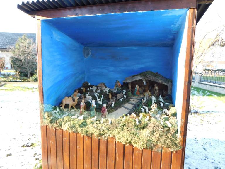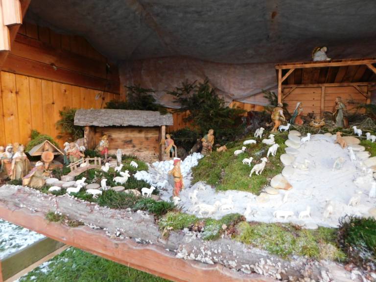 Jaslice so ponoči osvetljene in tako dajejo Božični vasi svoj čar. Vse jaslice so narejene po svetopisemskem izročilu.