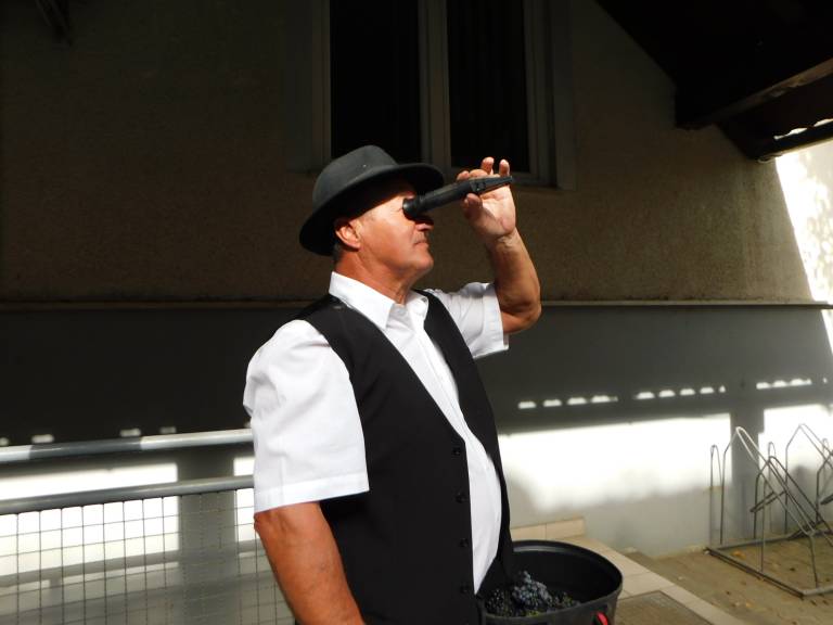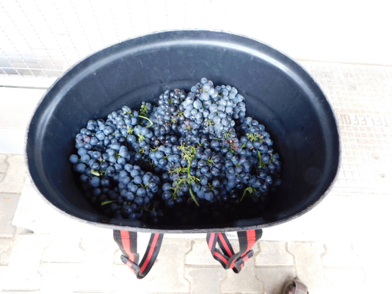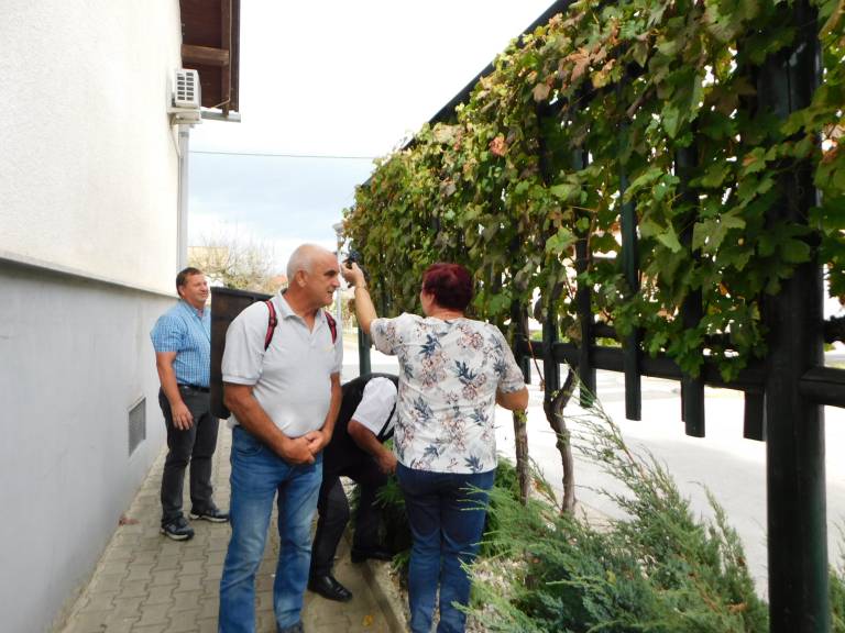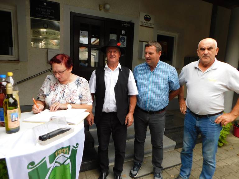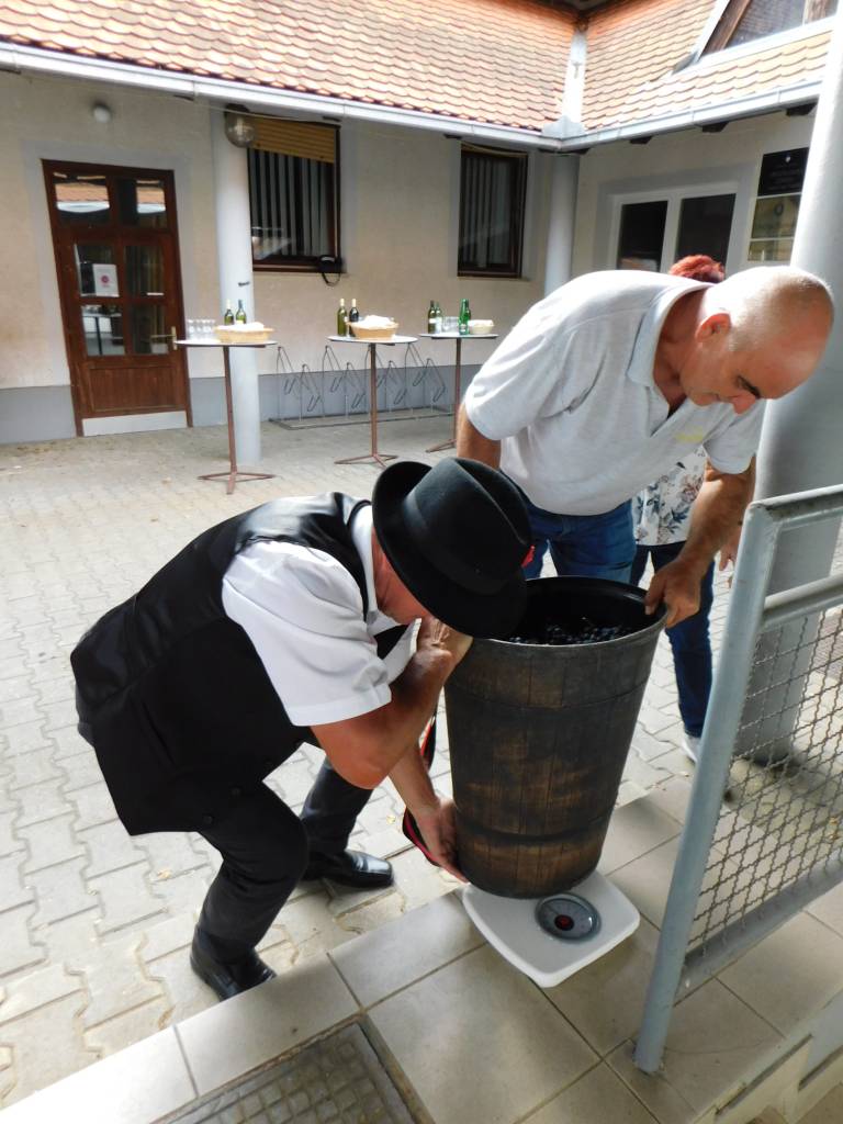 V Turnišču se je včeraj, 8. oktobra, odvijala trgatev grozdja žametne črnine, ki raste pred občinsko zgradbo.