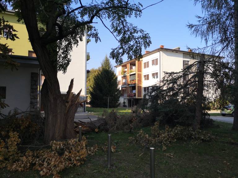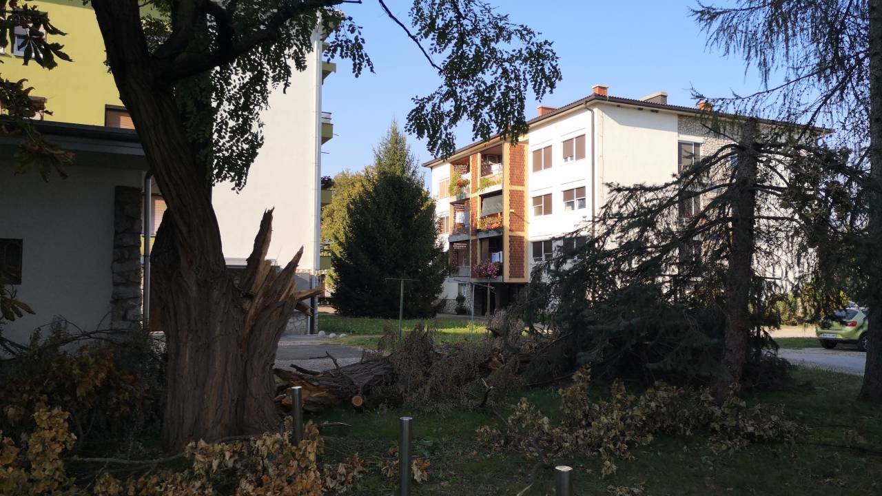 Na Trgu zmage je bila odlomljena večja veja na lipi in mladi brezi je odtrgalo vrh in jo popolnoma uničilo.