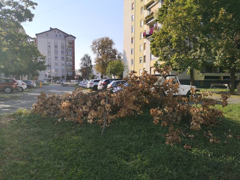 - Na ulici Štefana Kovača je bil s koreninami izruvan rdeči hrast, premer debla en meter, star med 55-60 let,