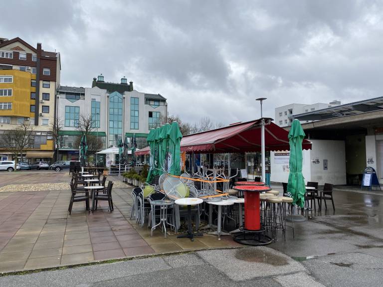 Sprehod po središču mesta razkriva, da je slabo vreme pokvarilo obisk na terasah in gostinskih lokalih.