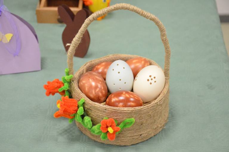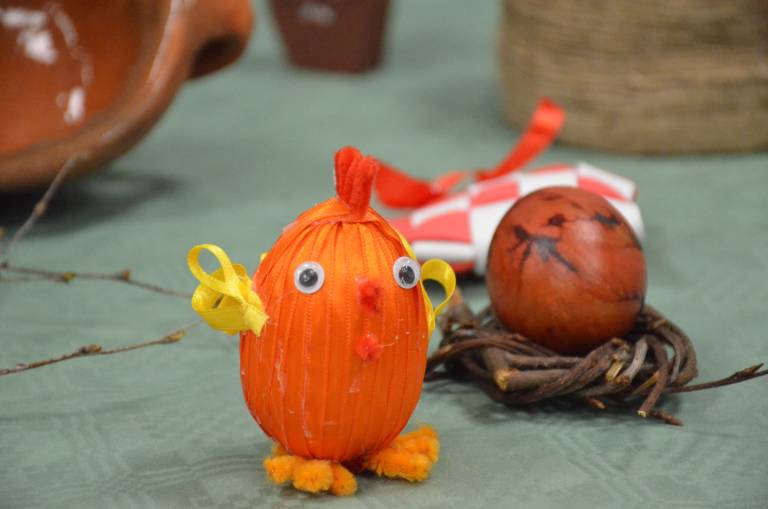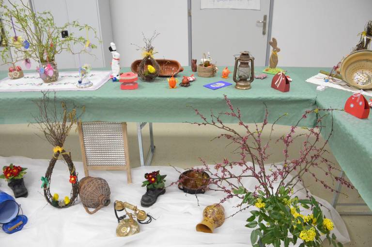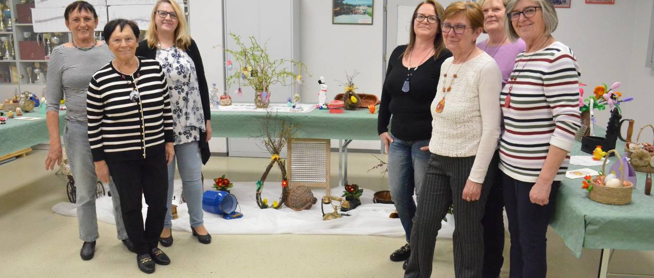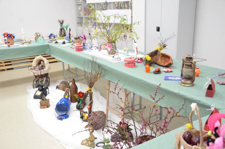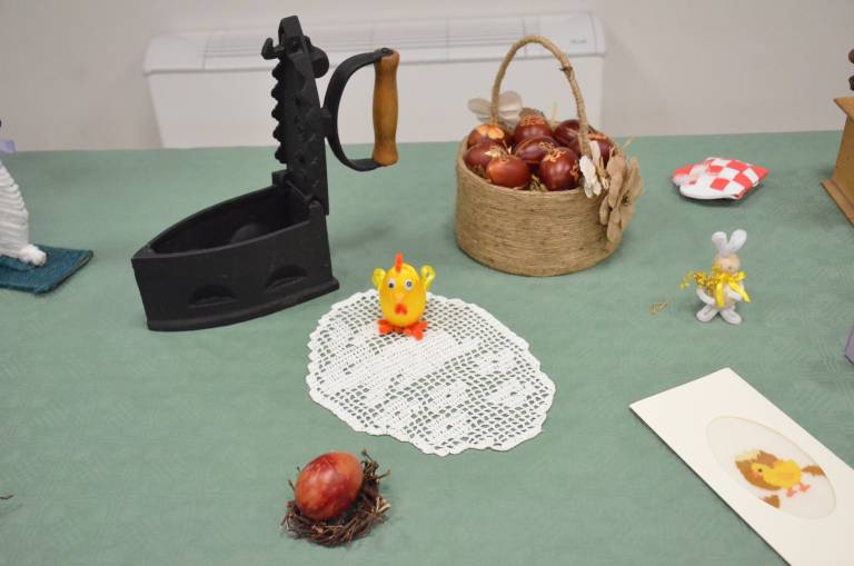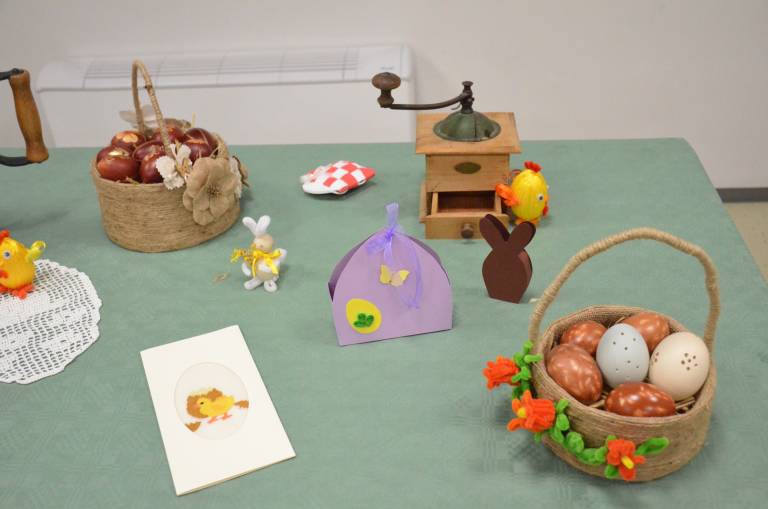 Začele so z božično razstavo, kjer si je vsak obiskovalec lahko izdelek tudi odnesel domov. Po novem letu pa so se zbrale z novim zagonom in ustvarile velikonočno čarovnijo: »Delale smo jajčke, rože, zajčke, letos pa smo dodale tudi starine – stare likalnike, telefone in glineno posodo,« pojasnjuje predsednica.