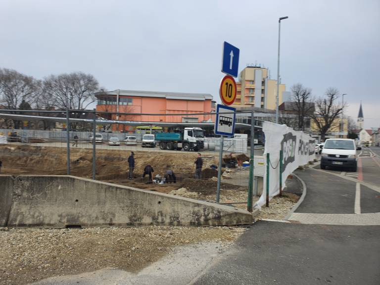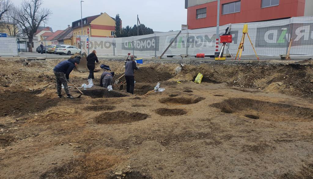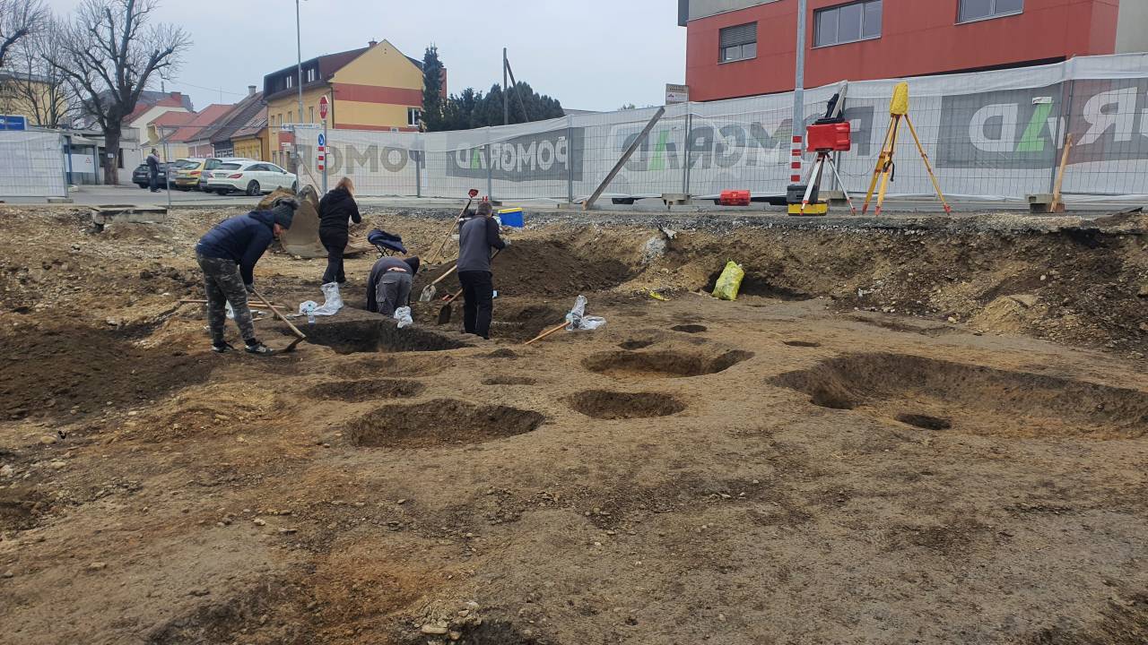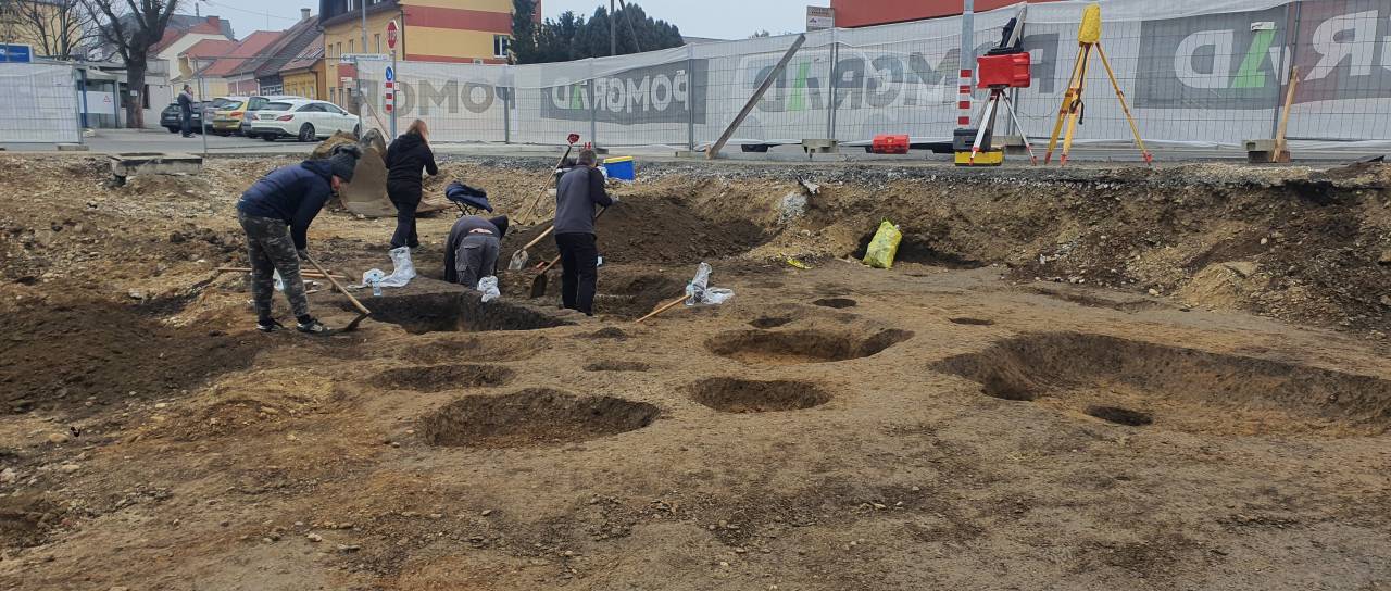 Opazili smo, da so v središču mesta, kjer so se 12. februarja začela dela v povezavi z gradnjo stanovanjsko-poslovnega objekta Zeleni dvor, na delu arheologi Pomurskega muzeja Murska Sobota.
