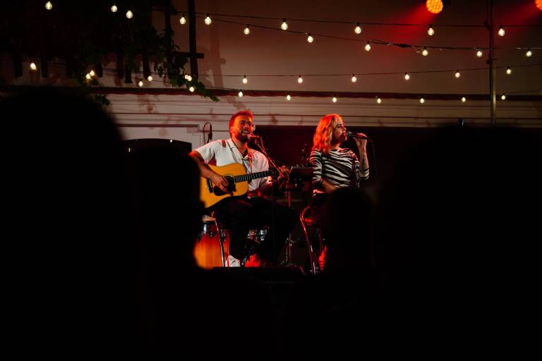 Večer sta odprla Katarina Šebök in Žiga Žekš, uigran glasbeni duet, ki je s prepletom vokalov in kitare pričaral edinstveno akustično vzdušje.
