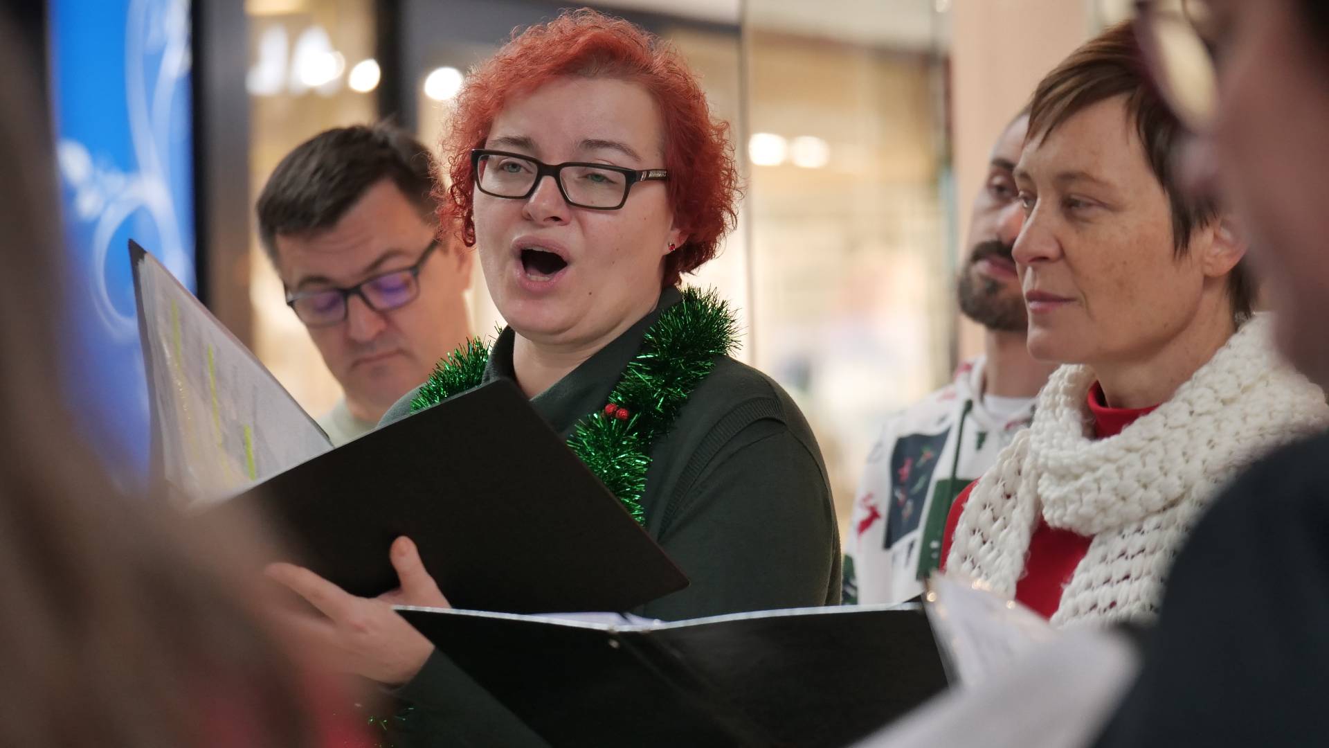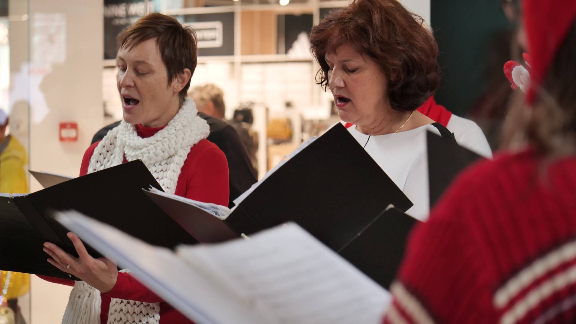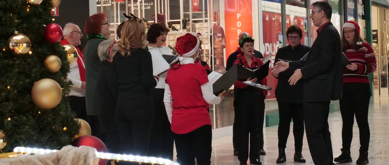 Zbor je z izborom božičnih melodij iz različnih delov sveta zapolnil nakupovalni prostor z ubranim petjem in prijetnim razpoloženjem.