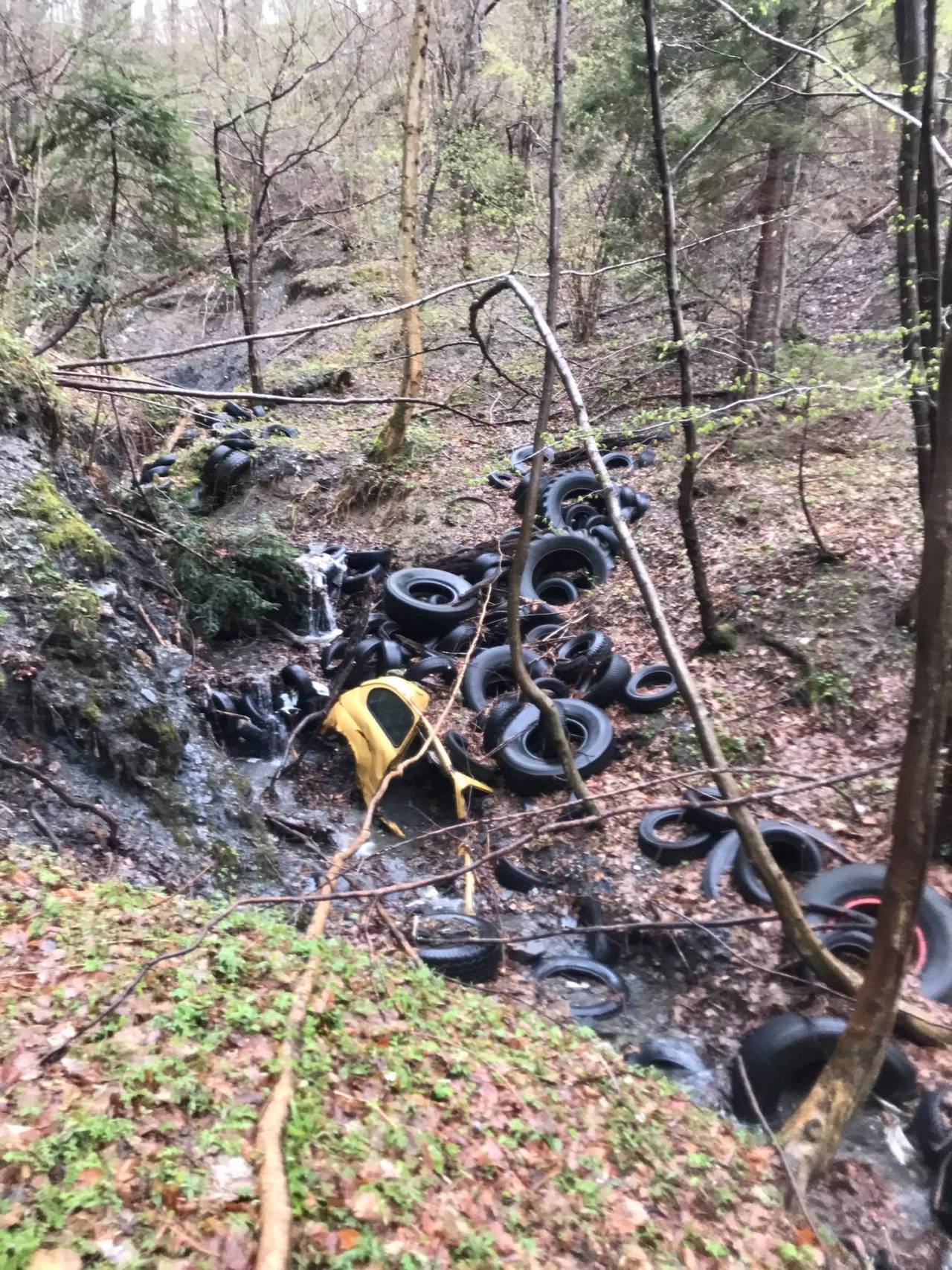 Bralec je odlagališče odpadnih pnevmatik opazil v naselju Matke v občini Prebold blizu planinske poti. Prijavo je podal na policijo, a s strahom, da bo odlagališče tam ostalo.