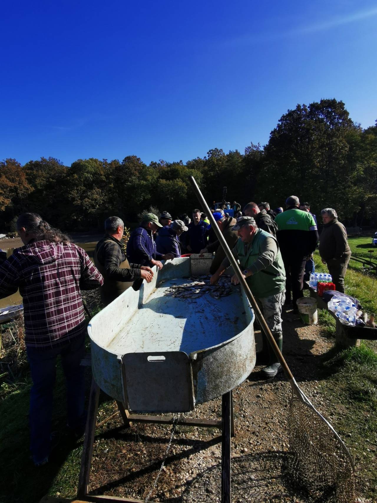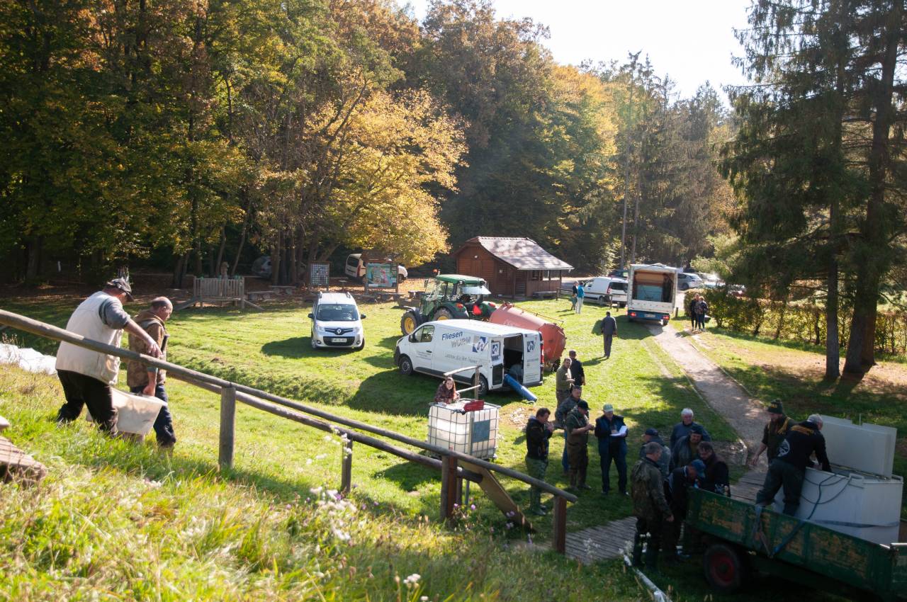 Danes več ribičev skrbi za premeščanje rib v ribji bazen pri ribiškem domu v Lendavi ter v okoliške lovne vode.