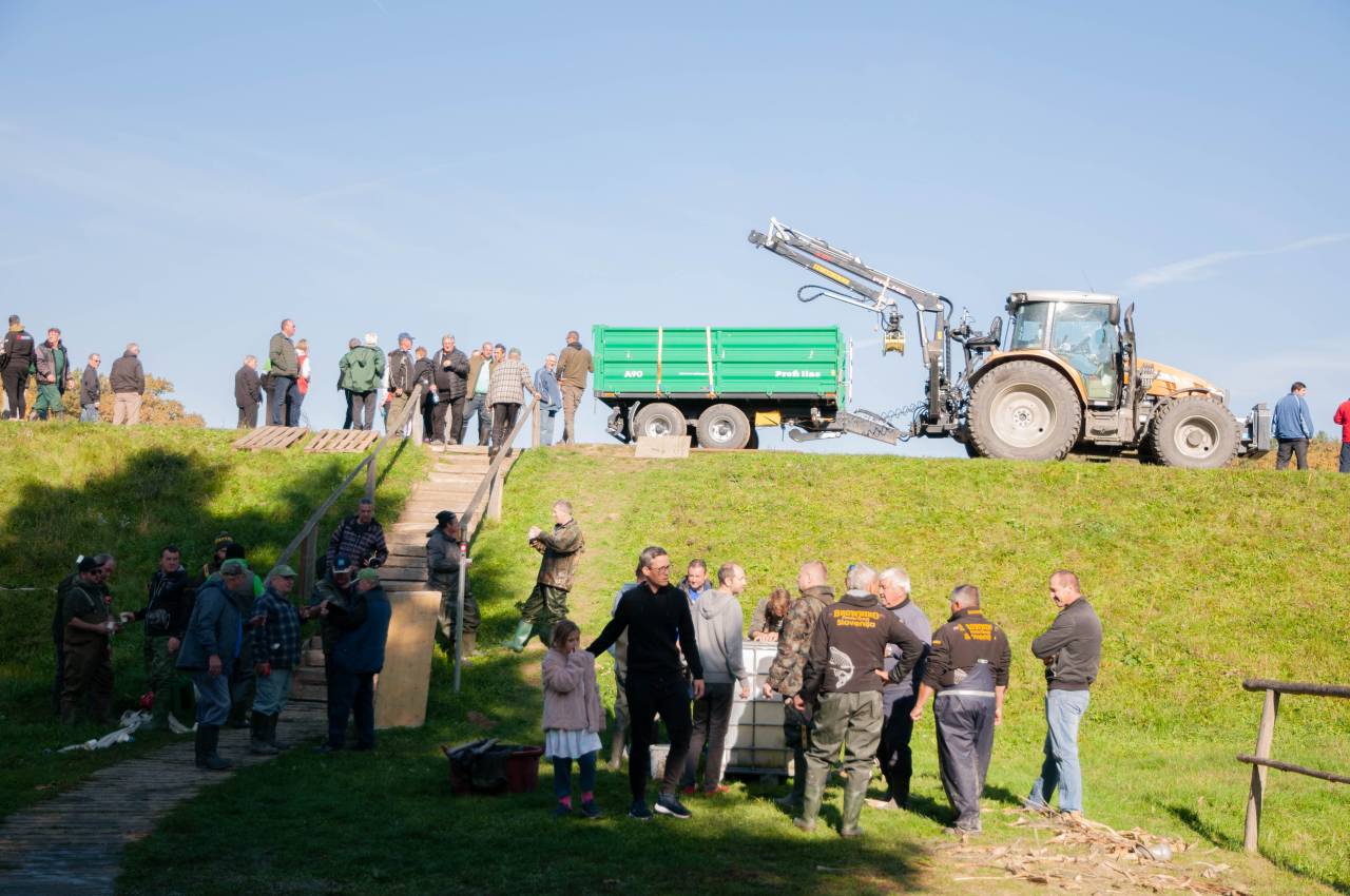 Danes ribiči iz Bukovniškega jezera selijo ribe v okoliške lovne vode. Dlje časa sanacije potreben nasip bo v prihajajočih dneh končno urejen.