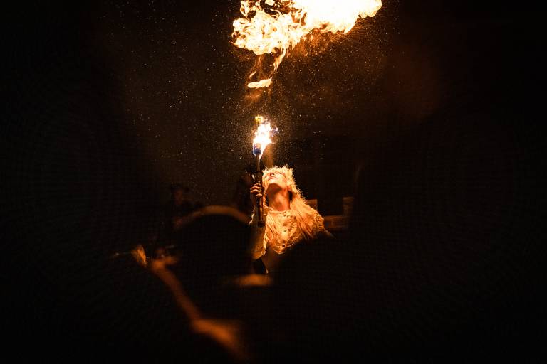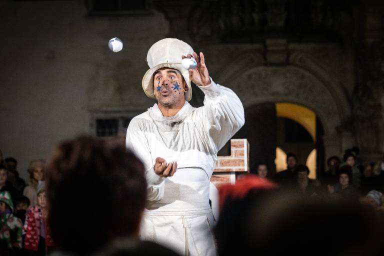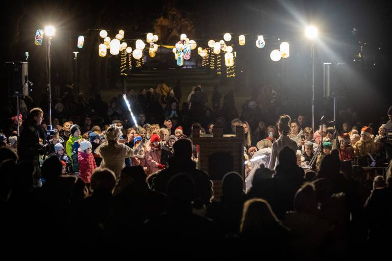 Ob 17. uri so na grajski ploščadi z lučkami pospremili prihod otrok iz Vrtca Murska Sobota. Sledila je artistična predstava Arbadakarbe 'Nabiralka zvezd', ki je dodala pridih čarobnosti večeru.