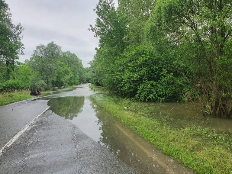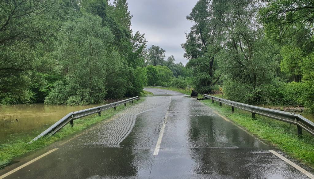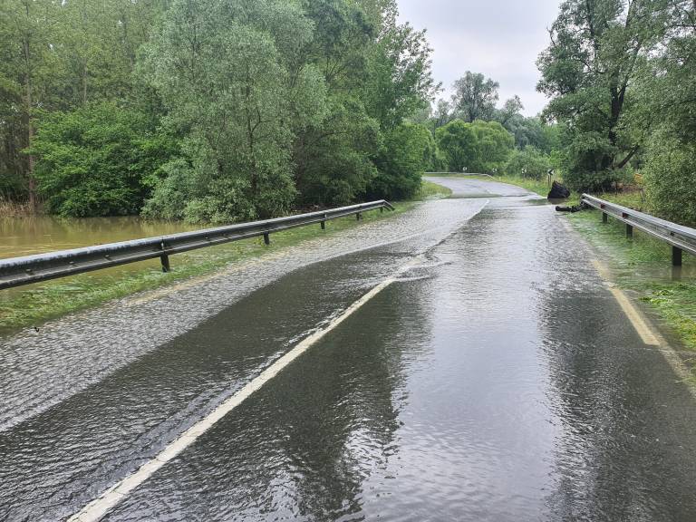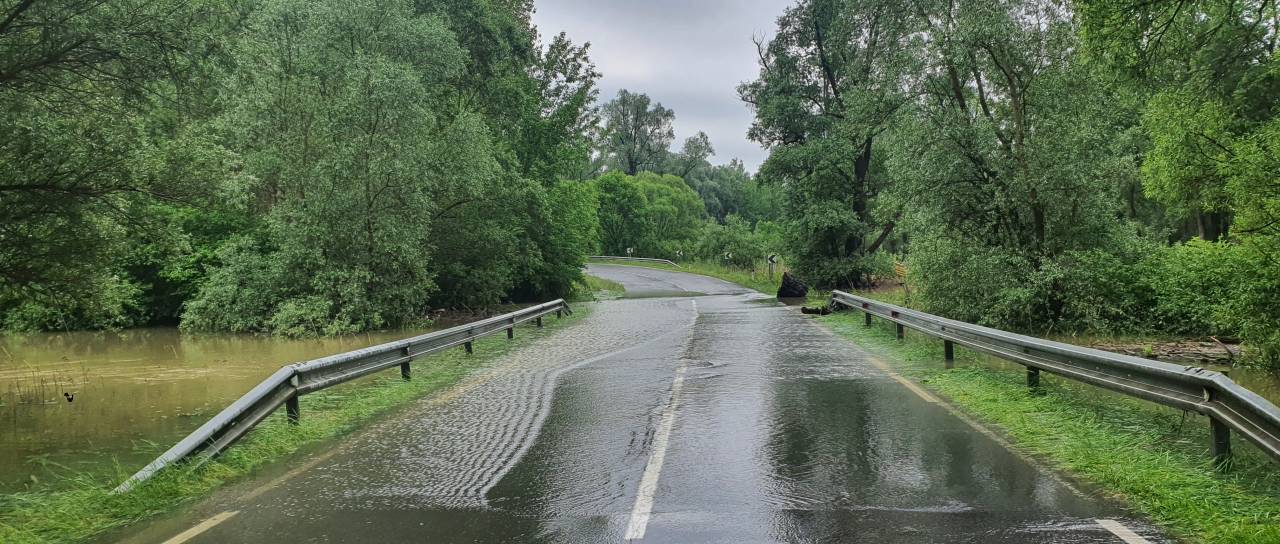 Obilno deževje je v zadnjih povzročilo nemalo težav po celotni Sloveniji, cesta Srednja Bistrica - Razkrižje je še vedno poplavljena.