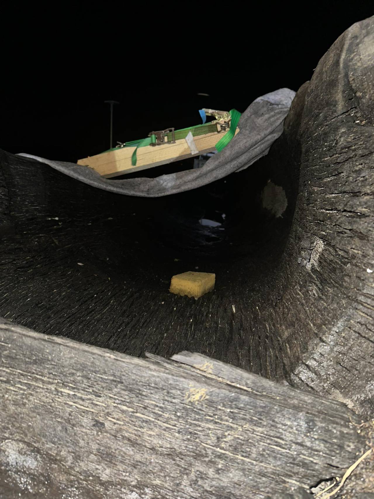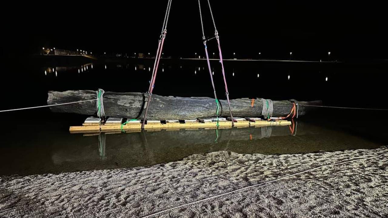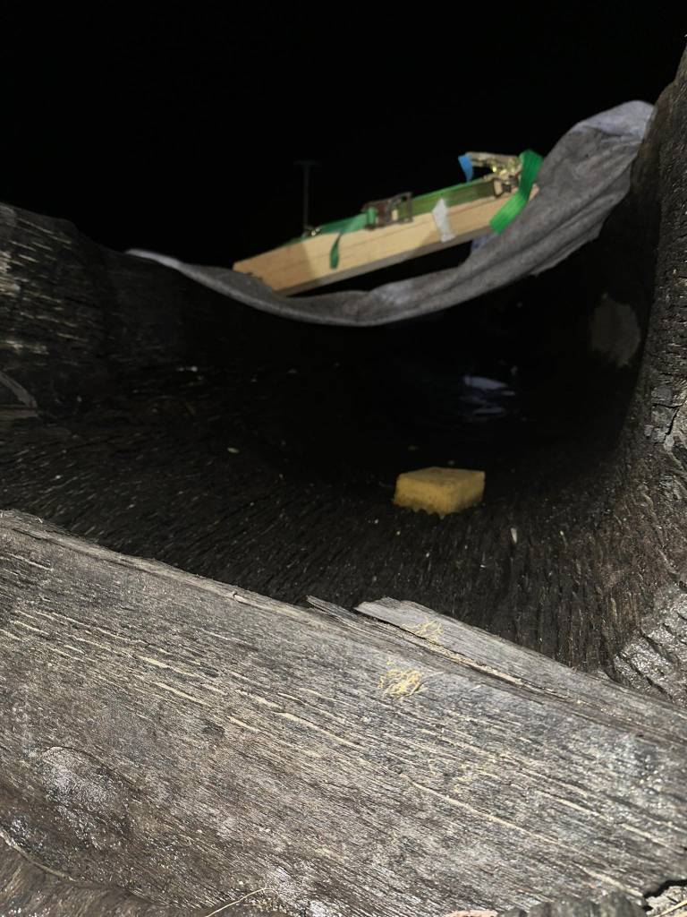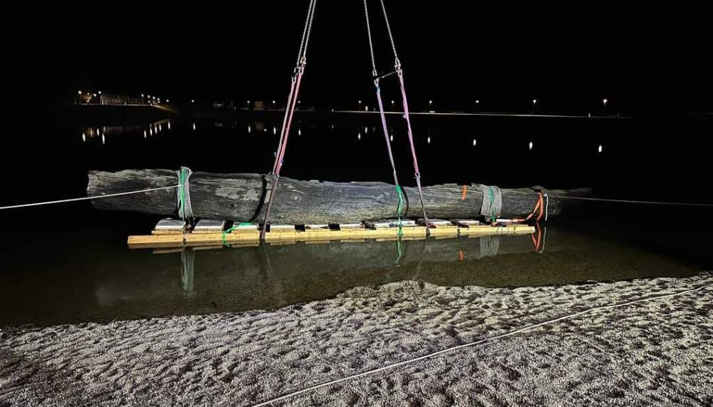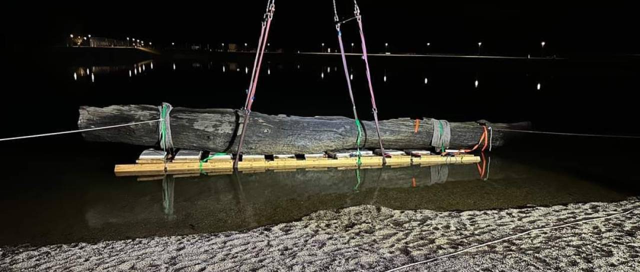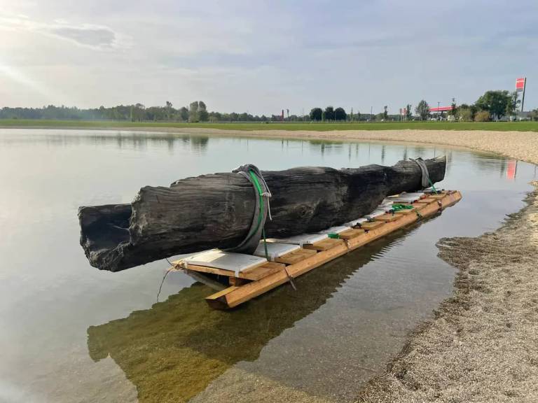 Starodavni čoln deblak, ki so ga našli v Muri, je včeraj, v poznih večernih urah, naposled prispel do Soboškega jezera.
