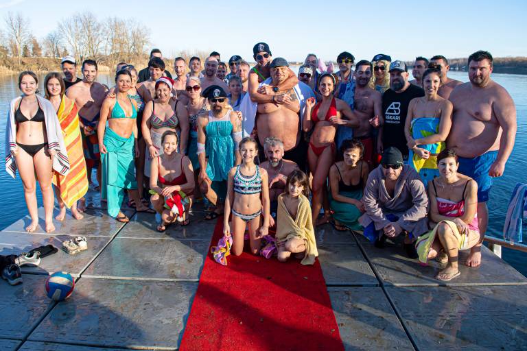 FOTO: Dahavski pingvini pripravljeni na novoletni skok v vodo