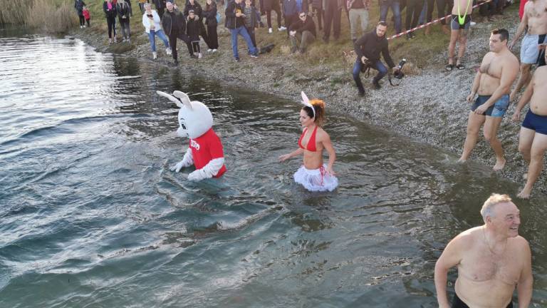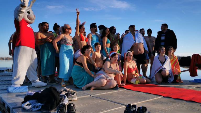 Veliko ljudi verjetno še podoživlja silvestrsko noč, nekateri pa so novo leto obeležili s skokom v Kamenšnico. Tako so Dahavski pingvini s še nekaj pogumneži danes, ob 14. uri, že sedmič tradicionalno zaplavali v Soboškem jezeru.