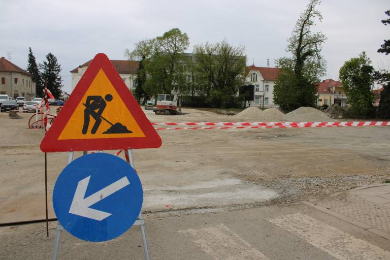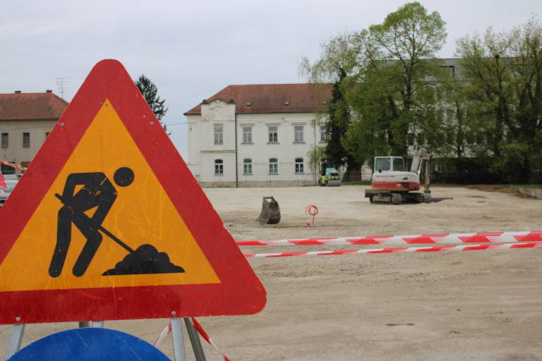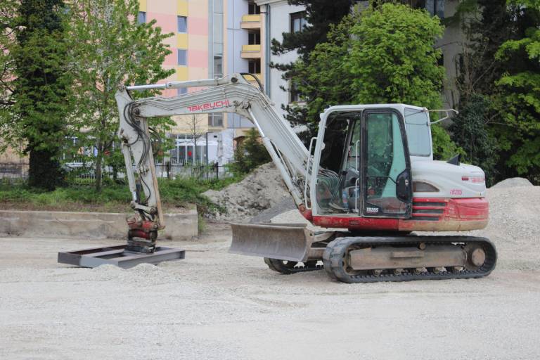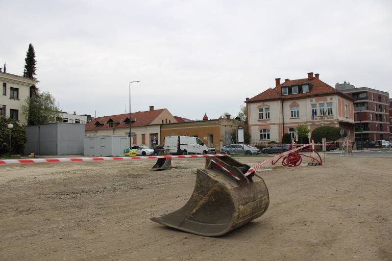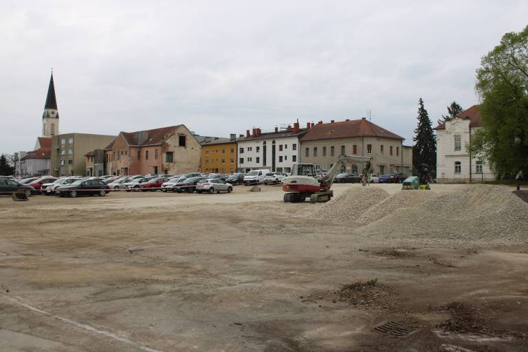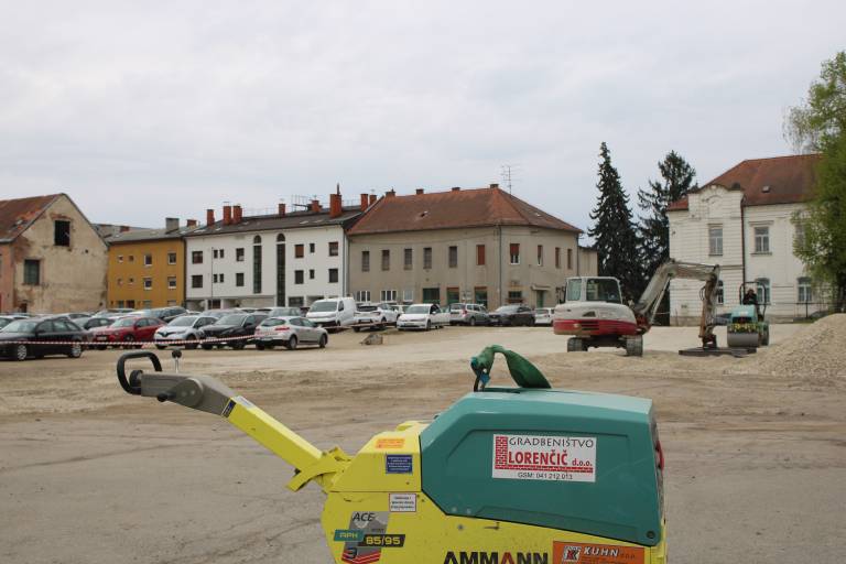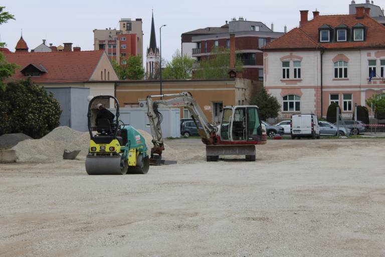 Na gramoznem parkirišču v središču Murske Sobote so zabrneli gradbeni stroji.