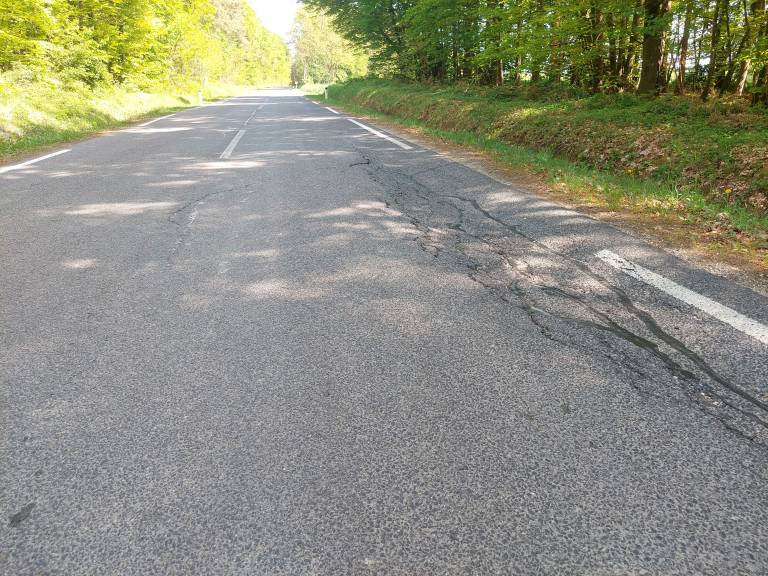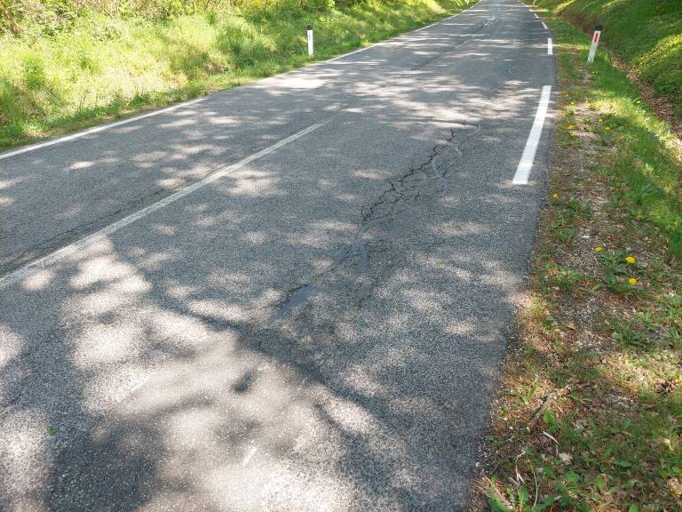 Koncesionar za redno vzdrževanje Pomgrad - cestno podjetje bo na osnovi potrjenega letnega plana del v poletnih mesecih izvedel lokalno krpanje poškodovanih površin na lokaciji večjih posedkov.