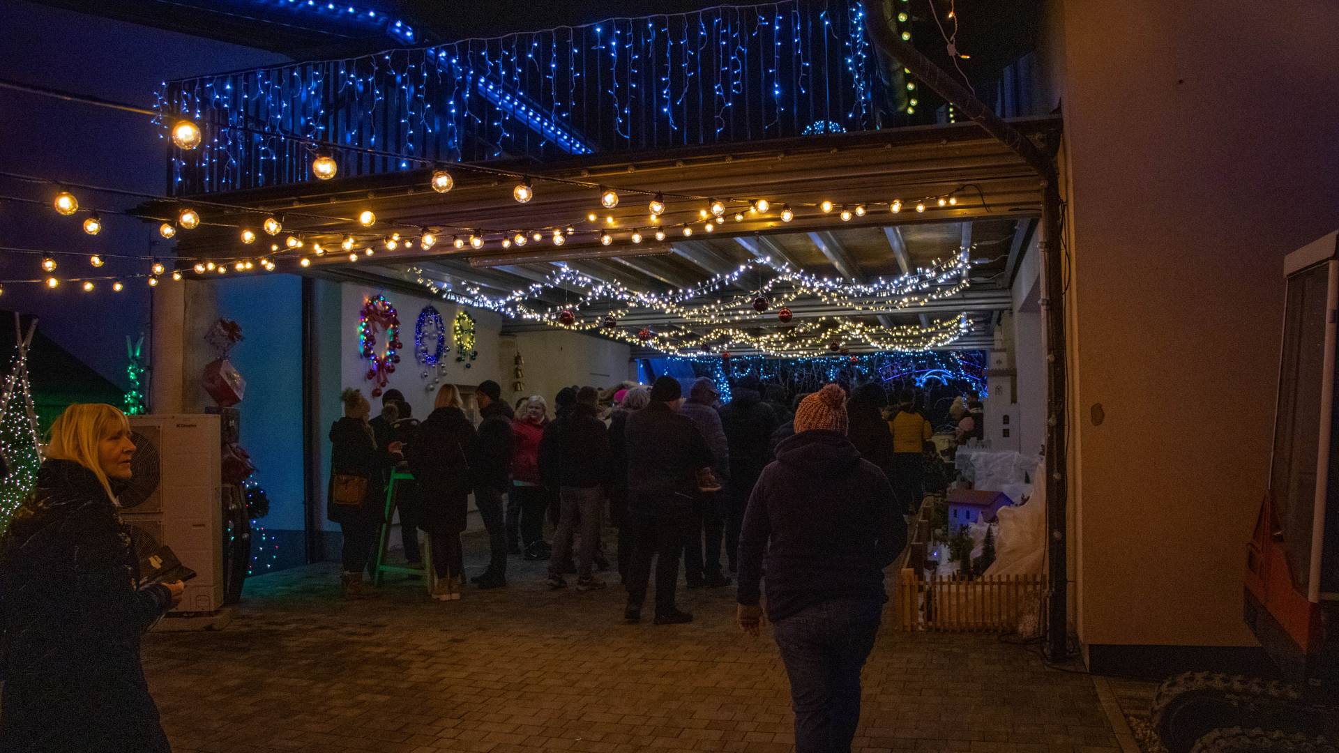 Ob tradicionalnem prižigu prazničnih luči pri družini Jurič so letos pripravili tudi presenečenje in poskrbeli za prijetno druženje.